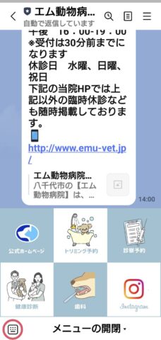 今後トリミングの予約確定連絡や診察受付後の待ち時間(自宅や車などで)のご連絡をLINEでお伝えします。
