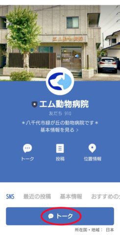 友だち登録が完了しますと先ほどのボタンがトークに変わりますのでタップ。
