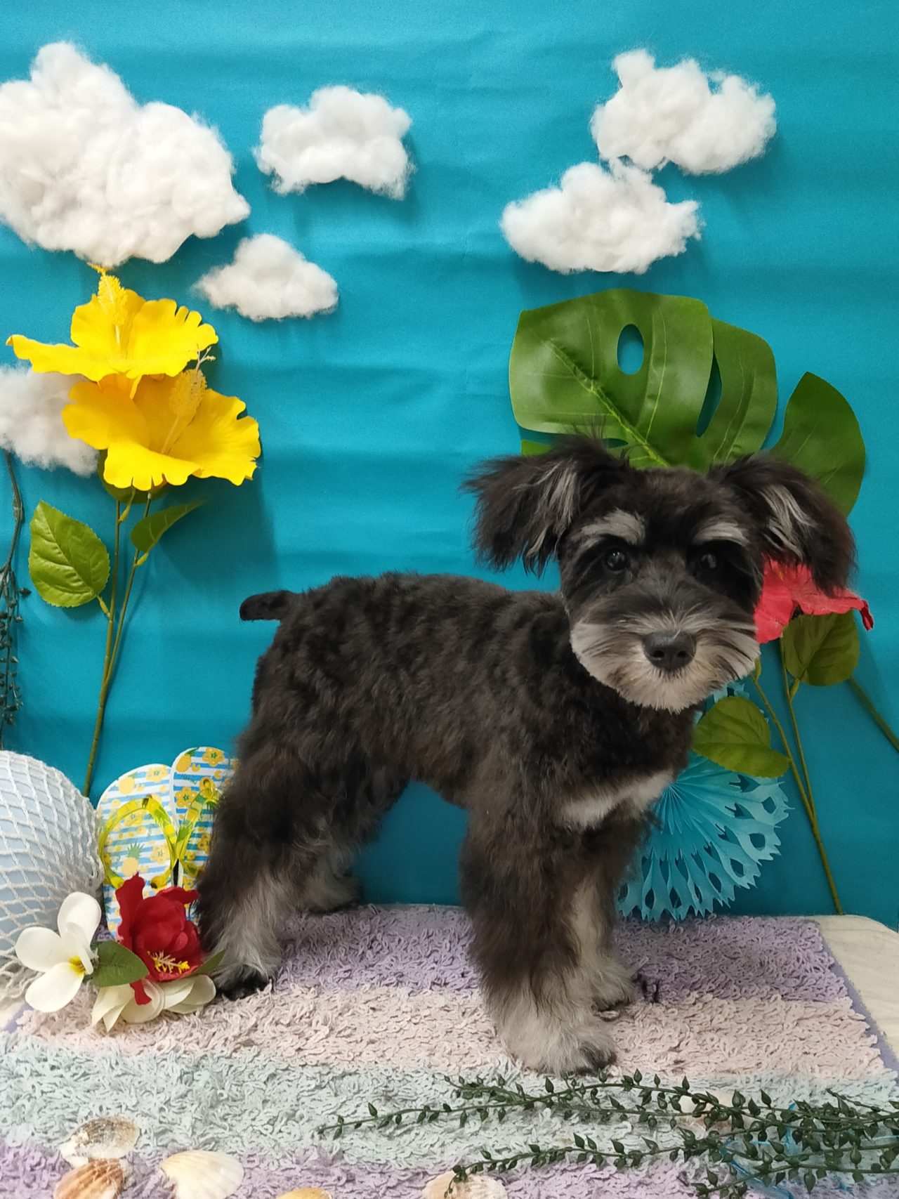 初めましてのワンコちゃんです。ミニチュアシュナウザーのミリちゃん。4ヶ月後半のパピーちゃんです。