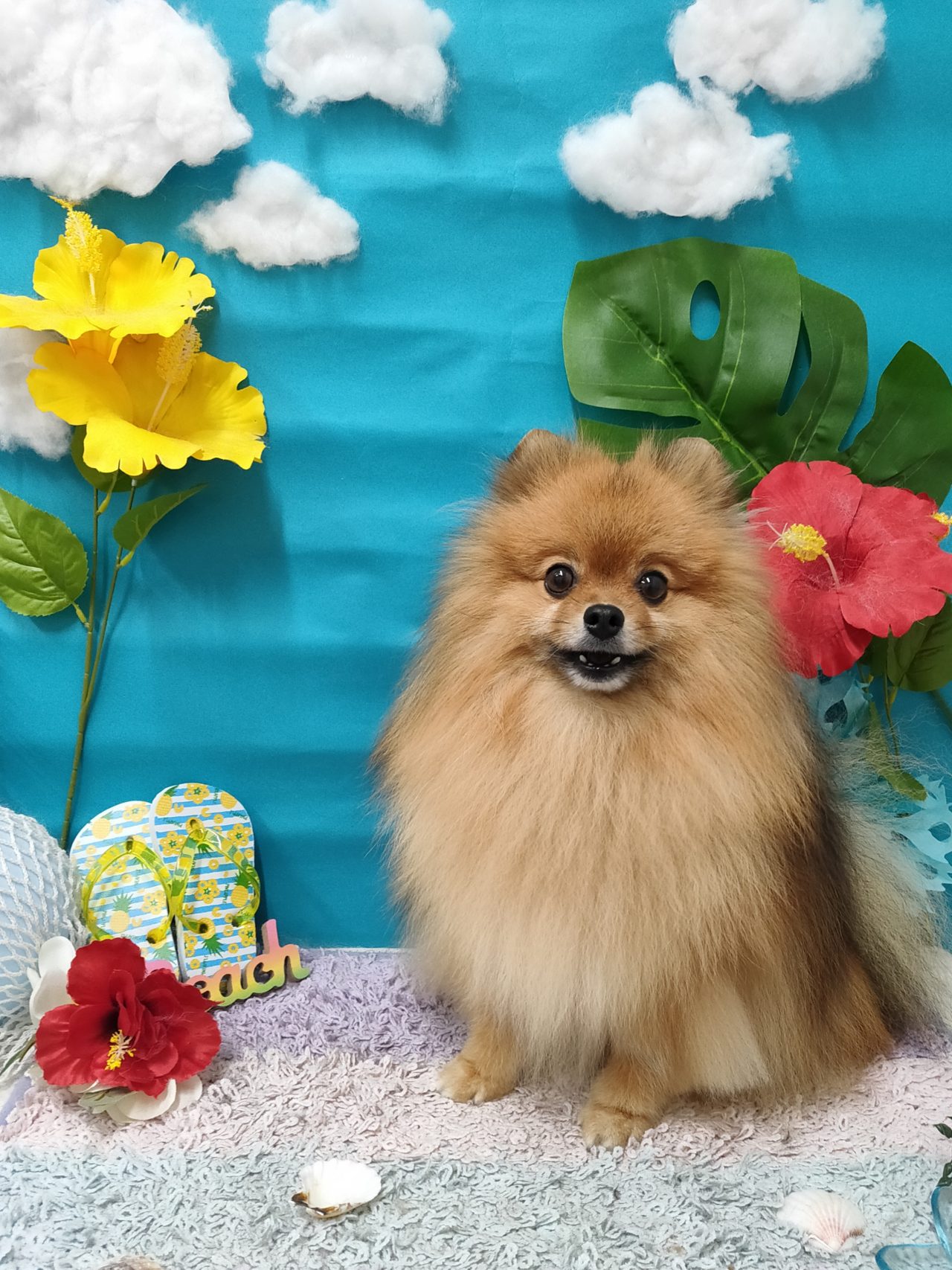 シャンプーコースのご利用です。ポメラニアンのもなかくん。