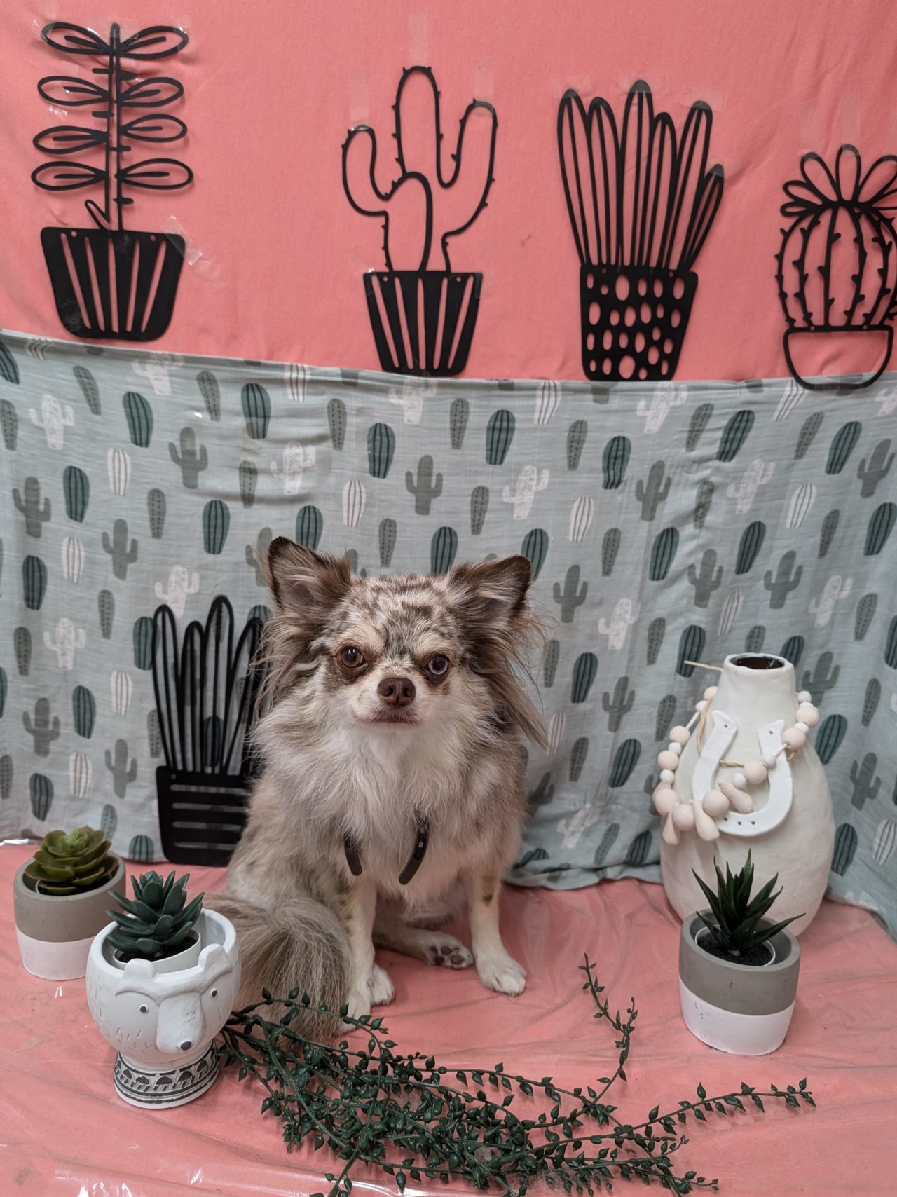 シャンプー&ポイントカットコースのご利用です。ロングコートチワワのプリンちゃん。