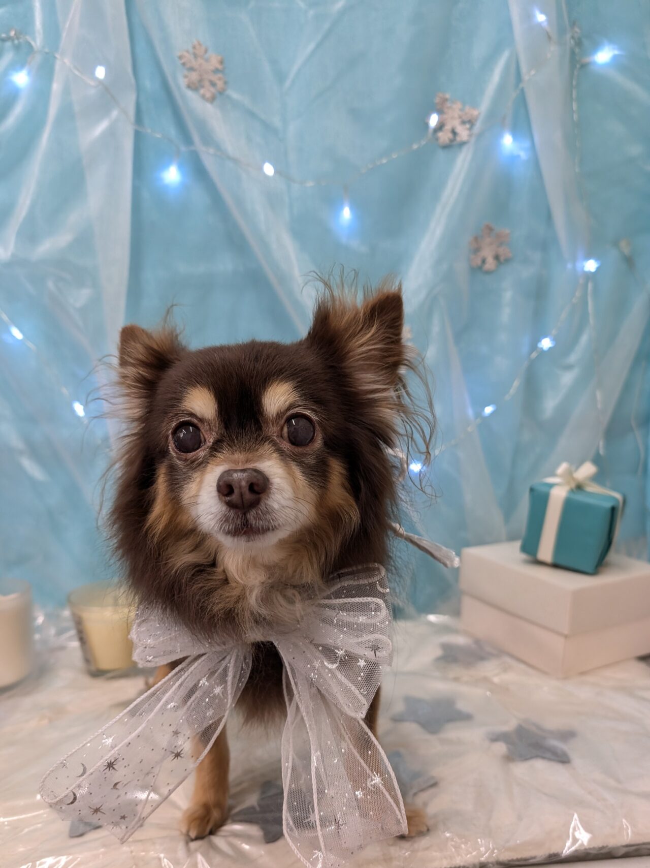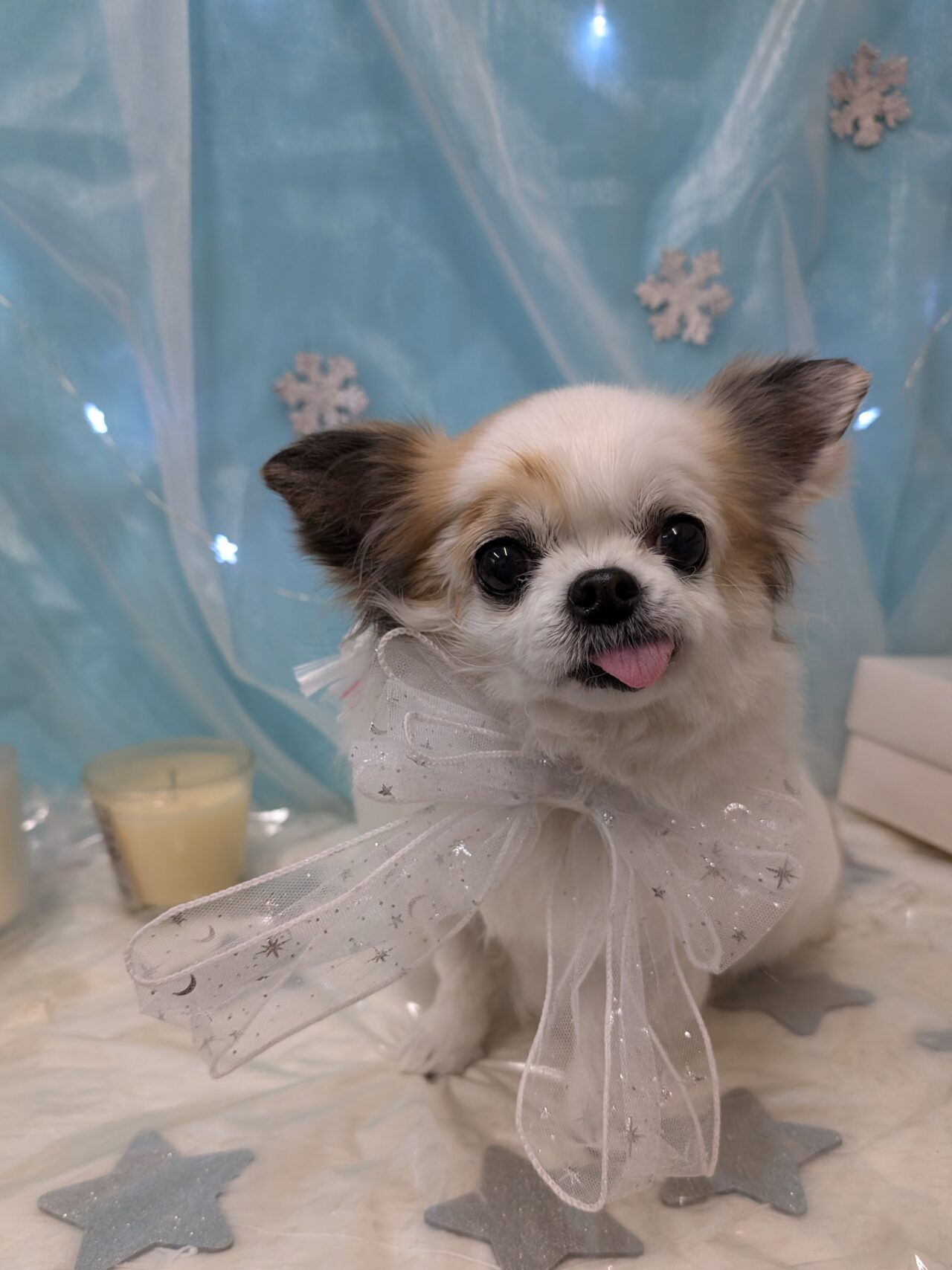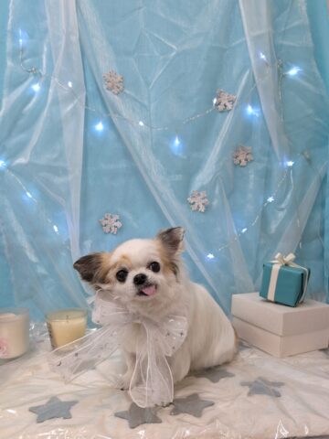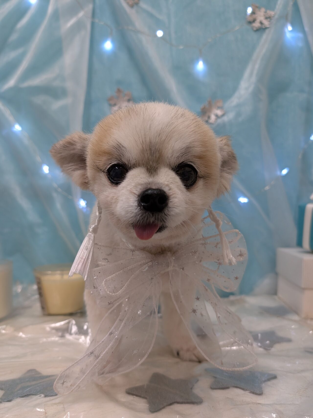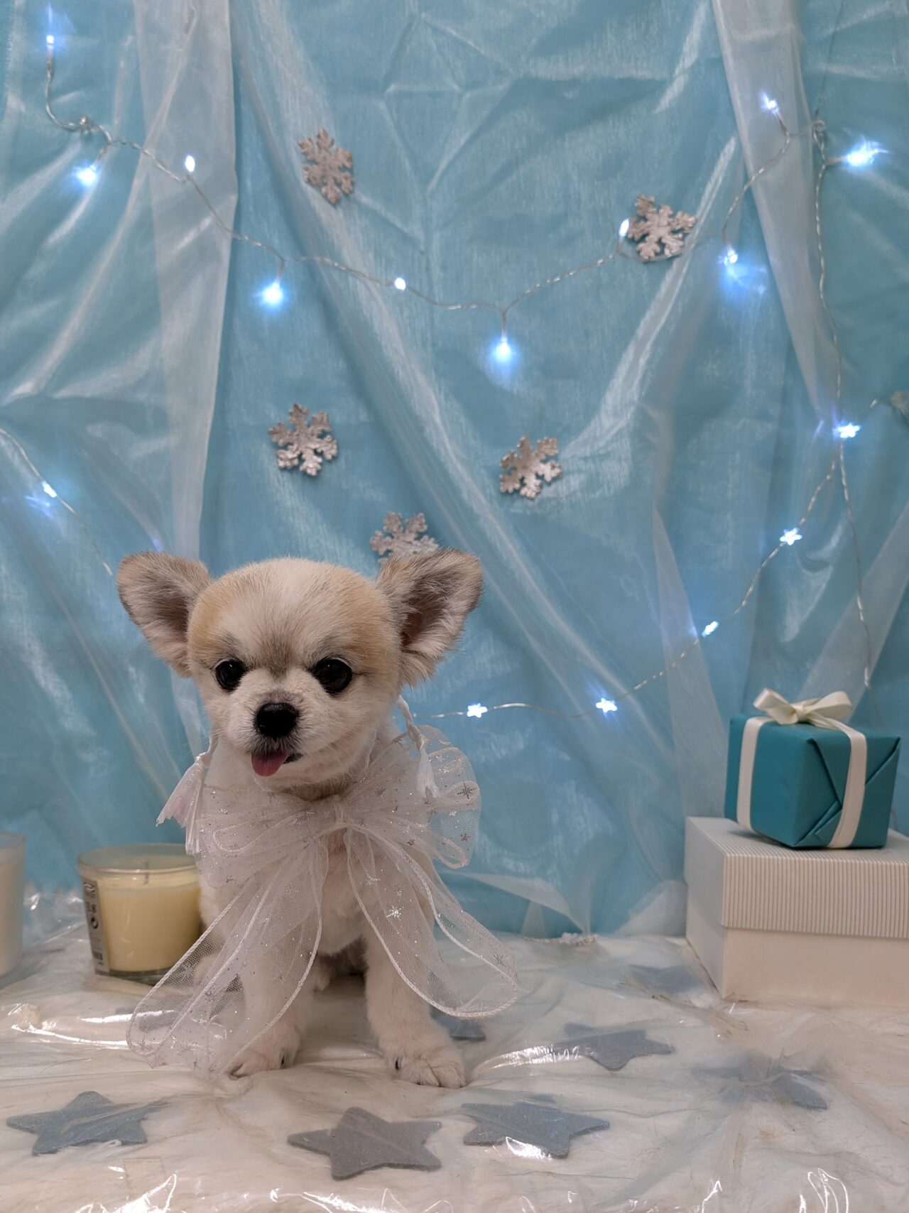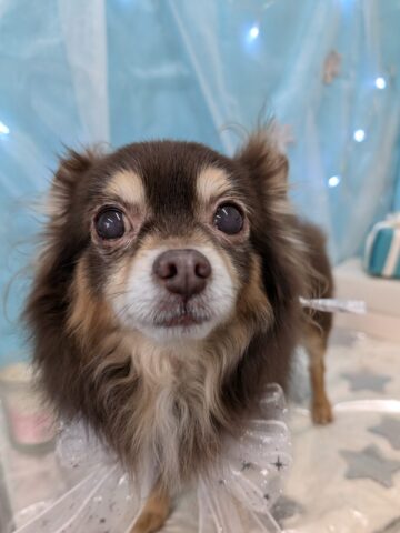 シャンプー&ポイントカットコースのご利用です。ロングコートチワワのプリンちゃん。