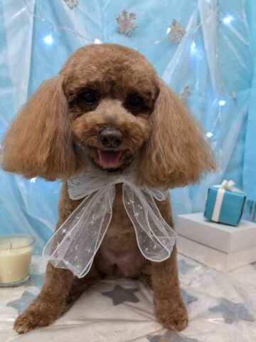 お薬シャンプー&カットコースのご利用です。トイプードルのビッキーちゃん。