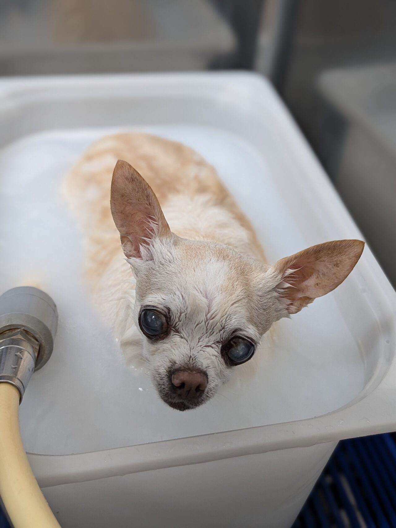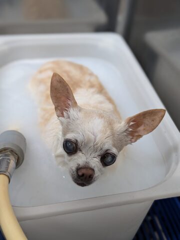 シャンプーコースのご利用です。スムースチワワの雪子ちゃん。