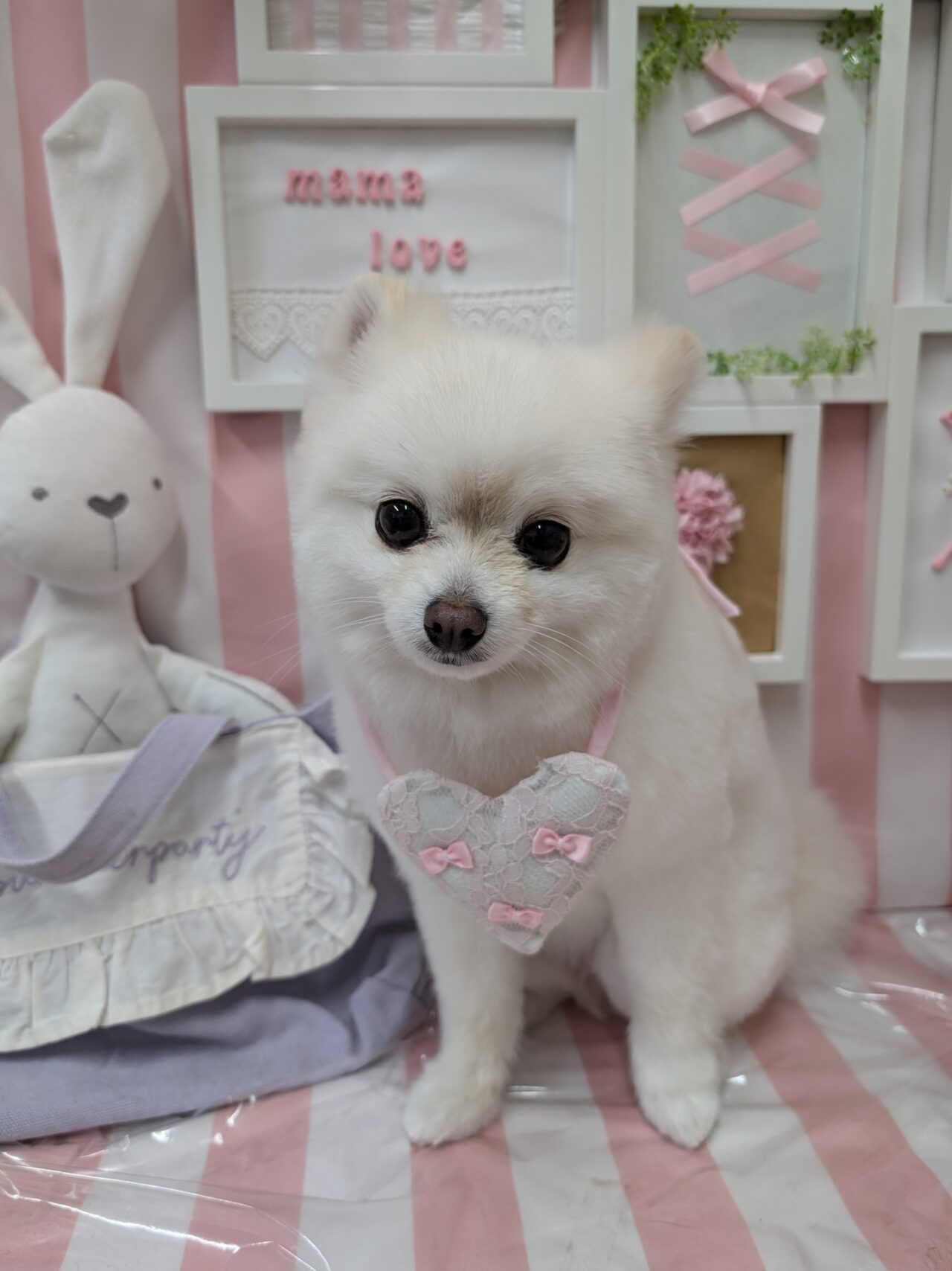 真っ白ふわふわのベイくん。本日もお利口さんでした✨