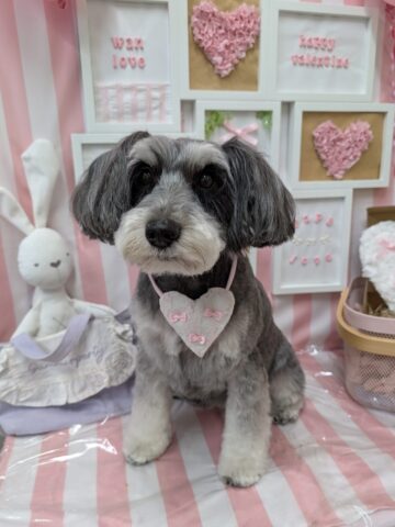 お薬シャンプー&カットコースのご利用です。ミニチュアシュナウザーのプリンちゃん。