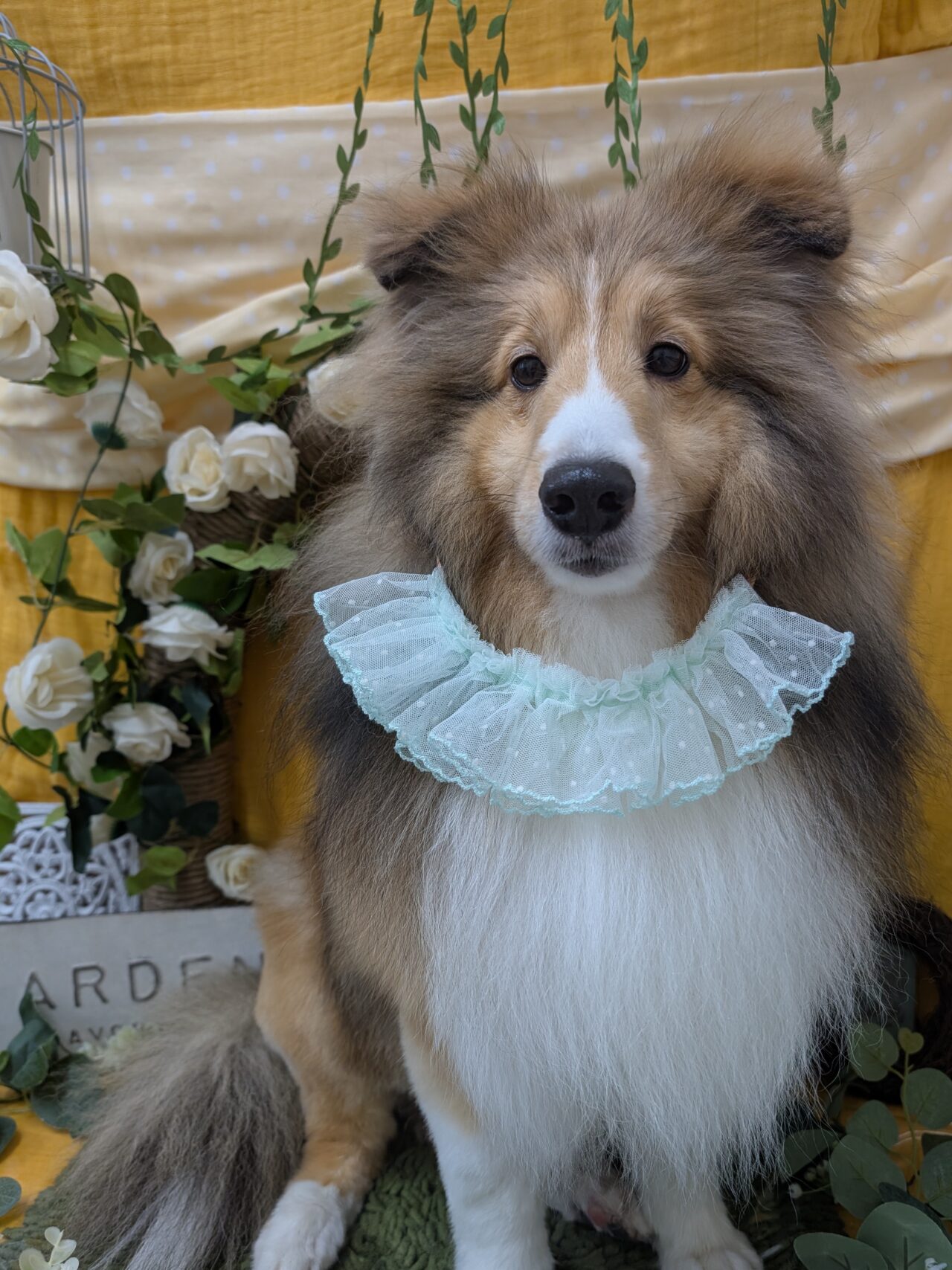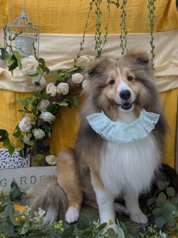 初めましてのワンちゃんです。シェルティのダンくん。シャンプー&ポイントカットコースのご利用です。