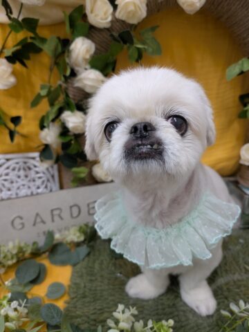 初めましてのワンちゃんです。マルチーズ×トイプードルのあさりちゃん。