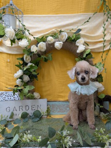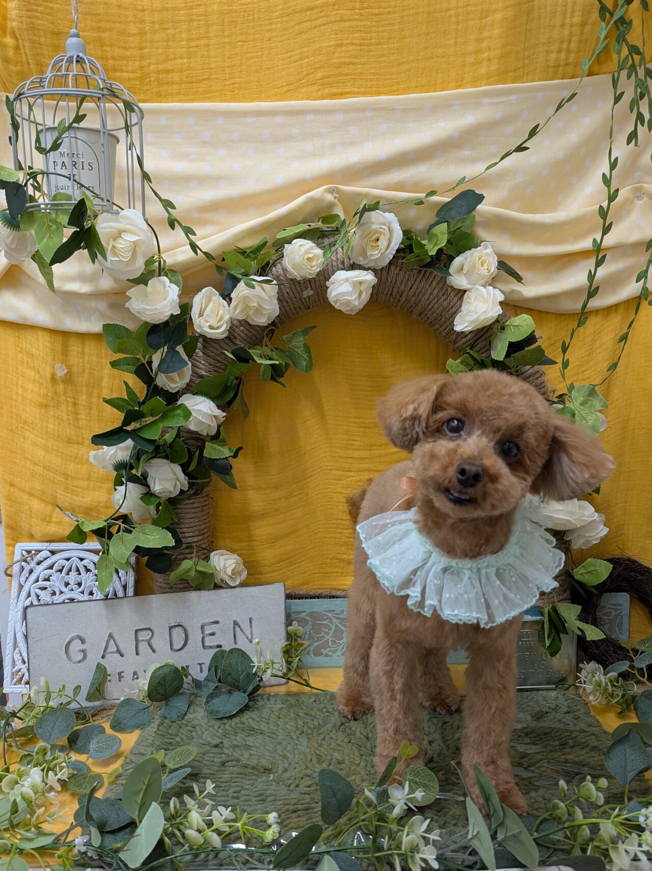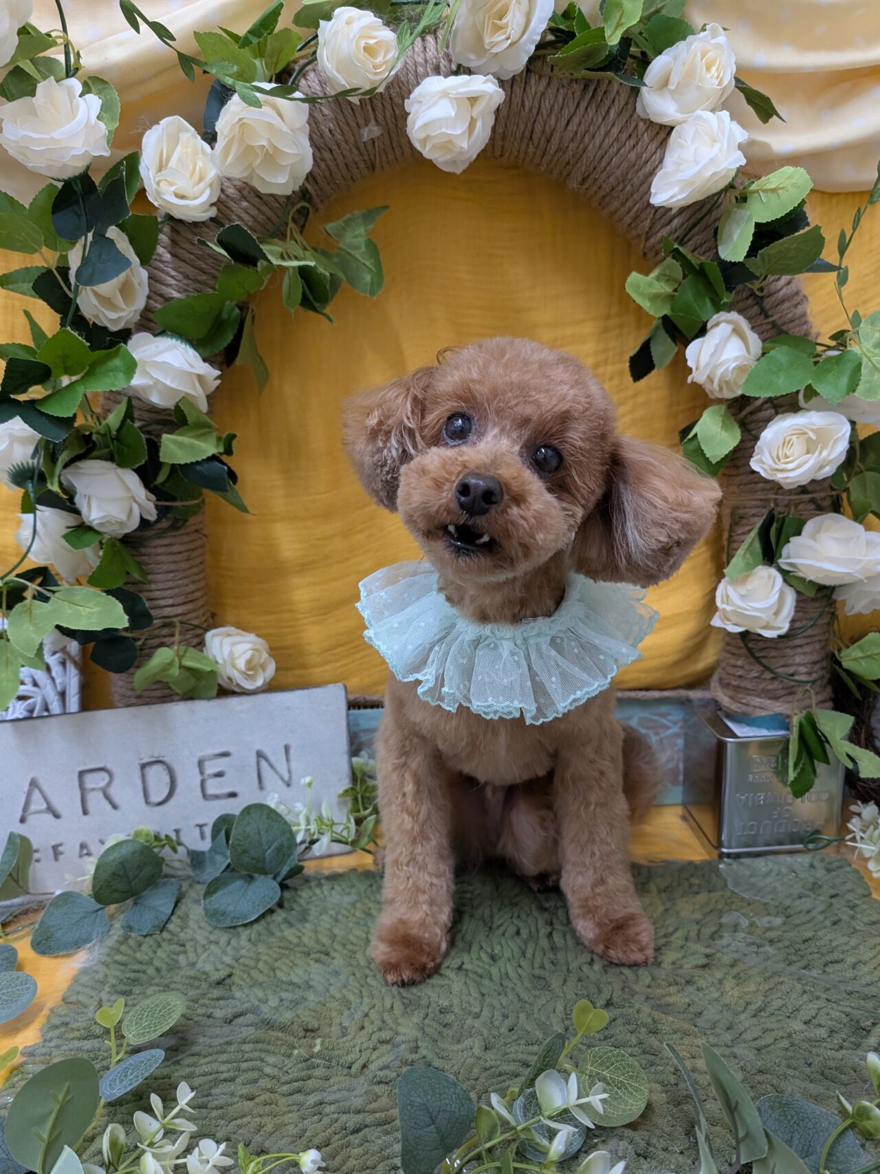 初めましてのワンコちゃんです。トイプードルのポカリくん。カットコースのご利用です。