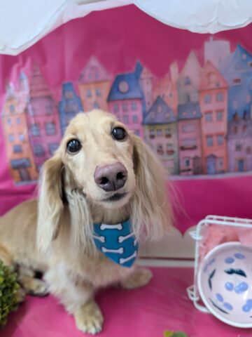 シャンプーコースのご利用です。ミニチュアダックスのクッキーくん。