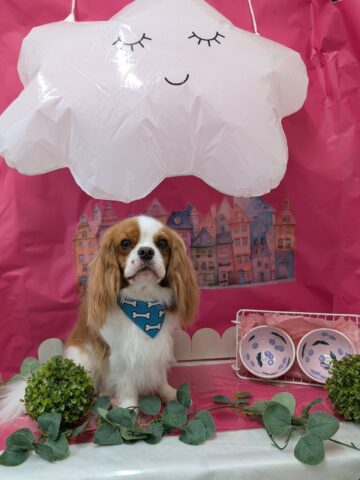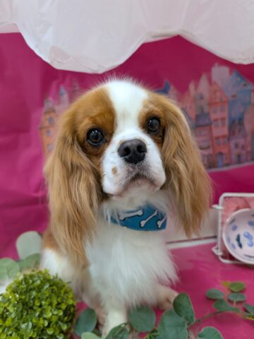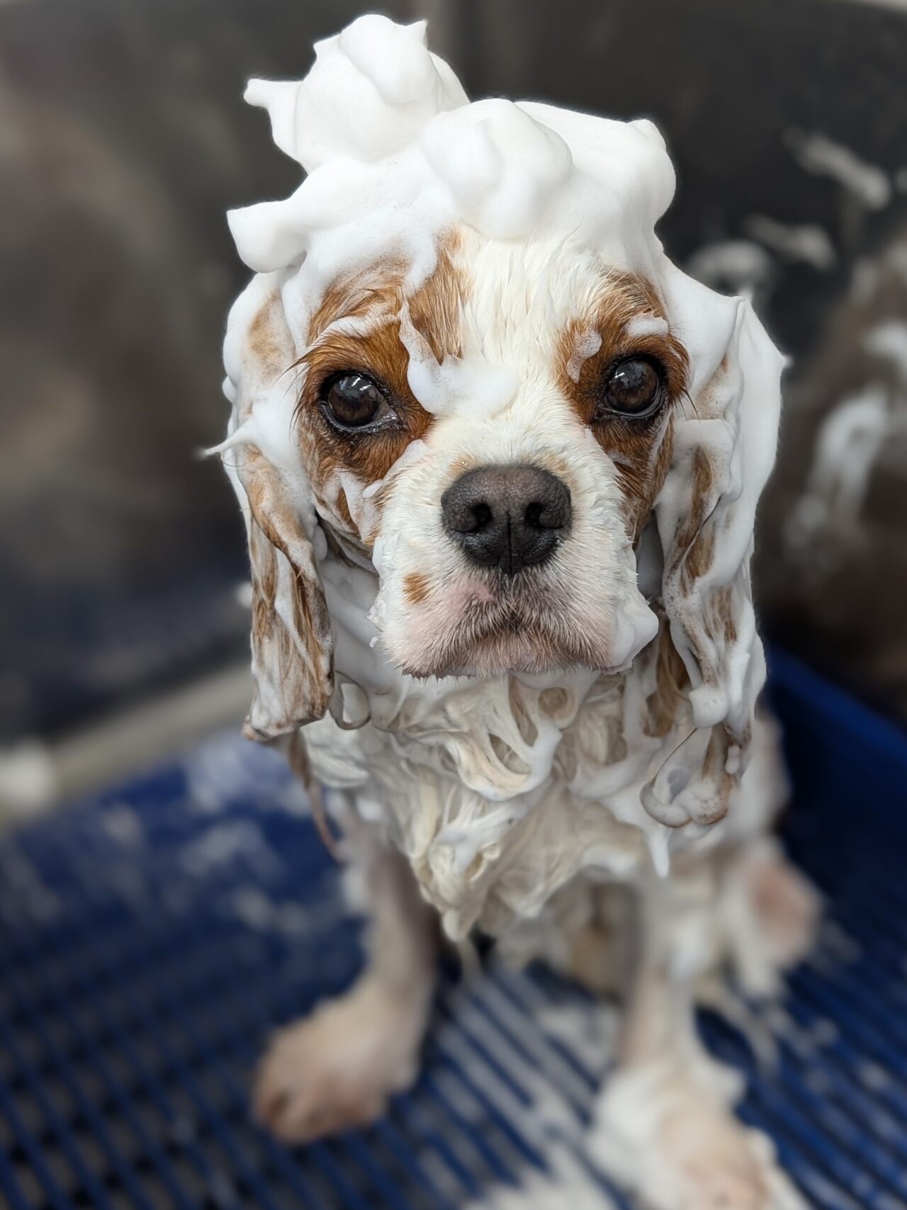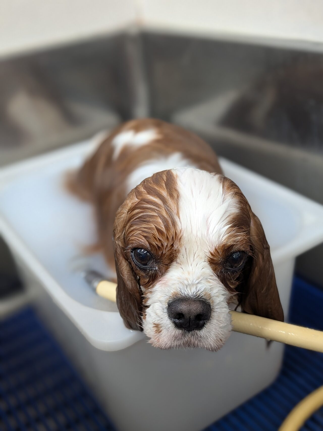 シャンプー&ポイントカットコースのご利用です。キャバリアのグリくん。