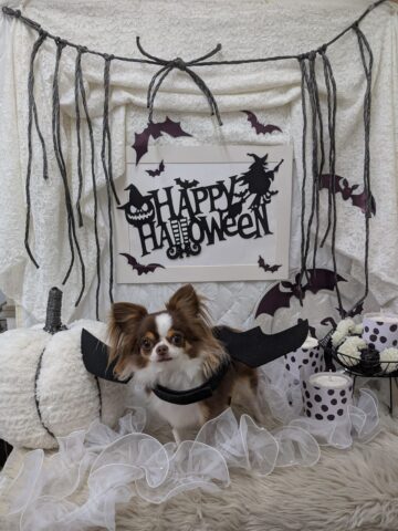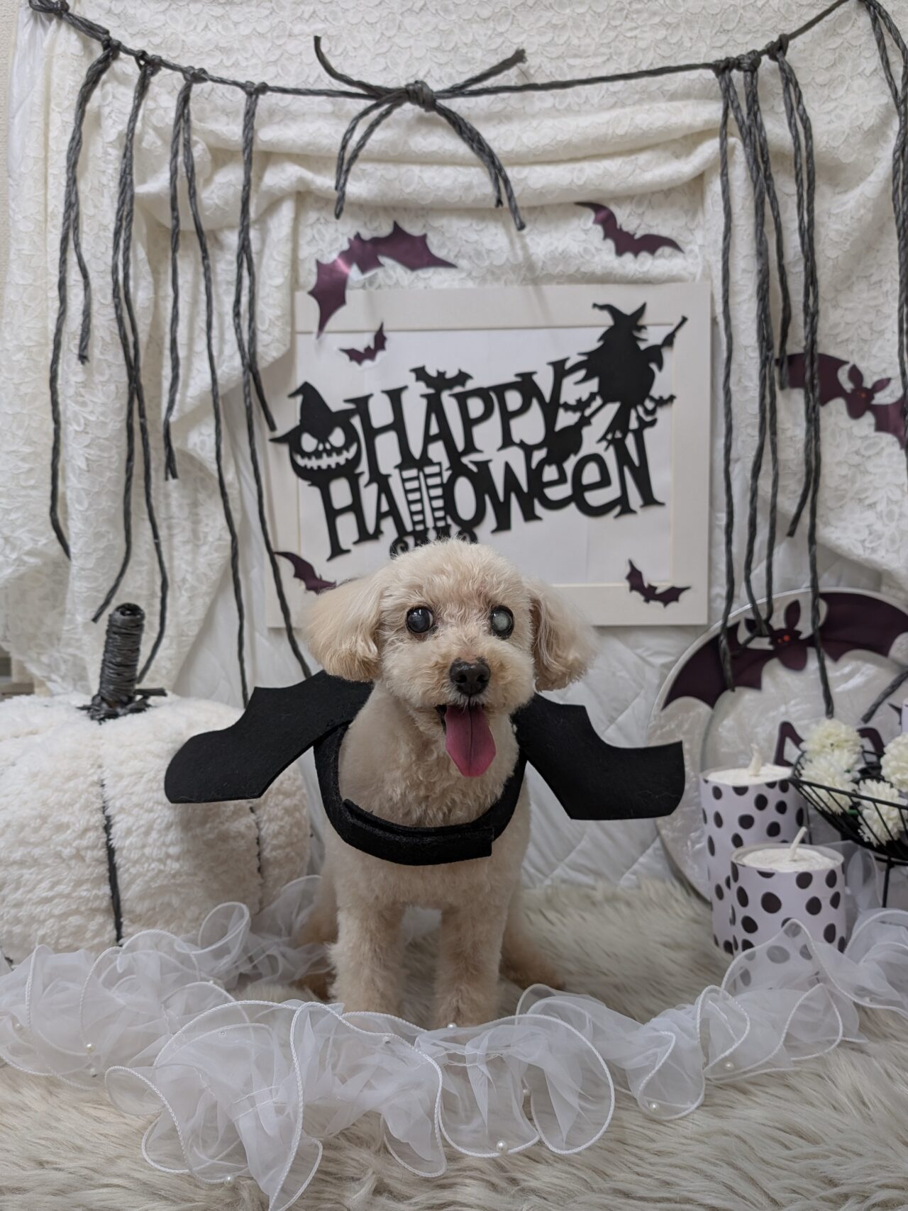 コウモリの羽をつけたら固まってしまったコアくん。ちっちゃなコアくんとっても可愛いです💕