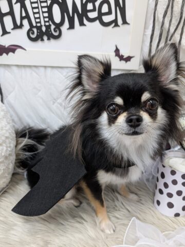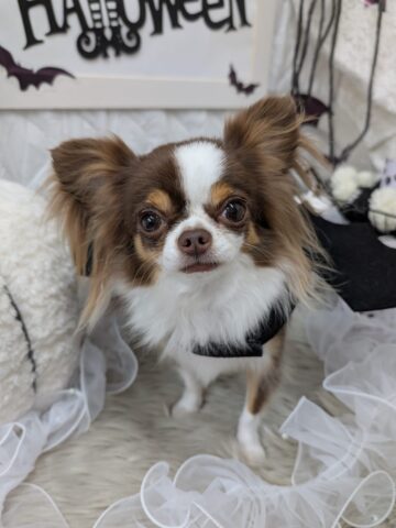 シャンプー&ポイントカットコースのご利用です。ロングコートチワワのコアくん。