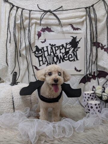 コウモリの羽をつけて真っ黒ツヤツヤバットマンに変身✨とってもお似合いです💓