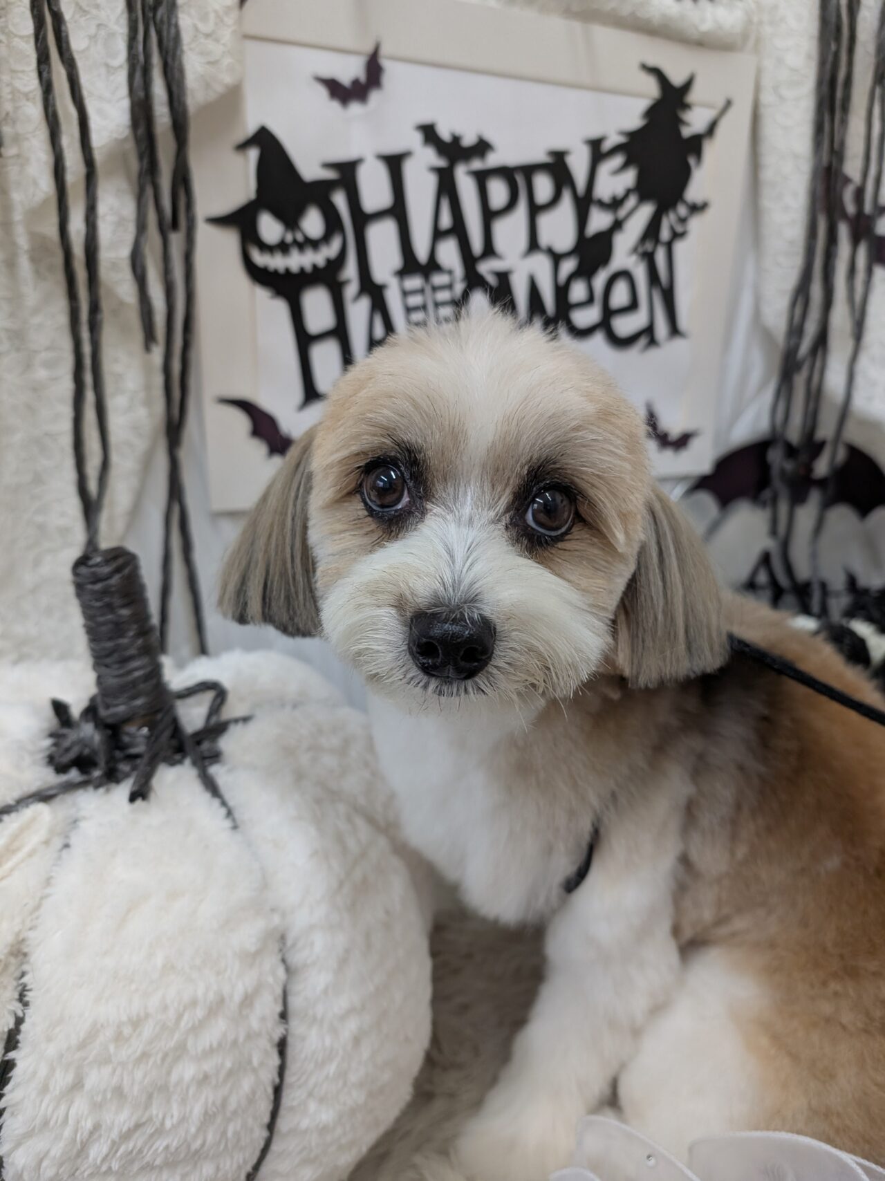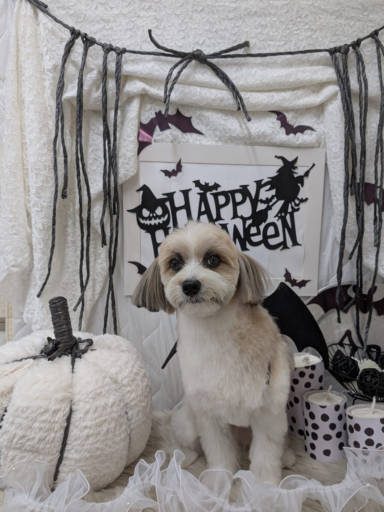 カットコースのご利用です。パピヨン×マルチーズのあべのくん。