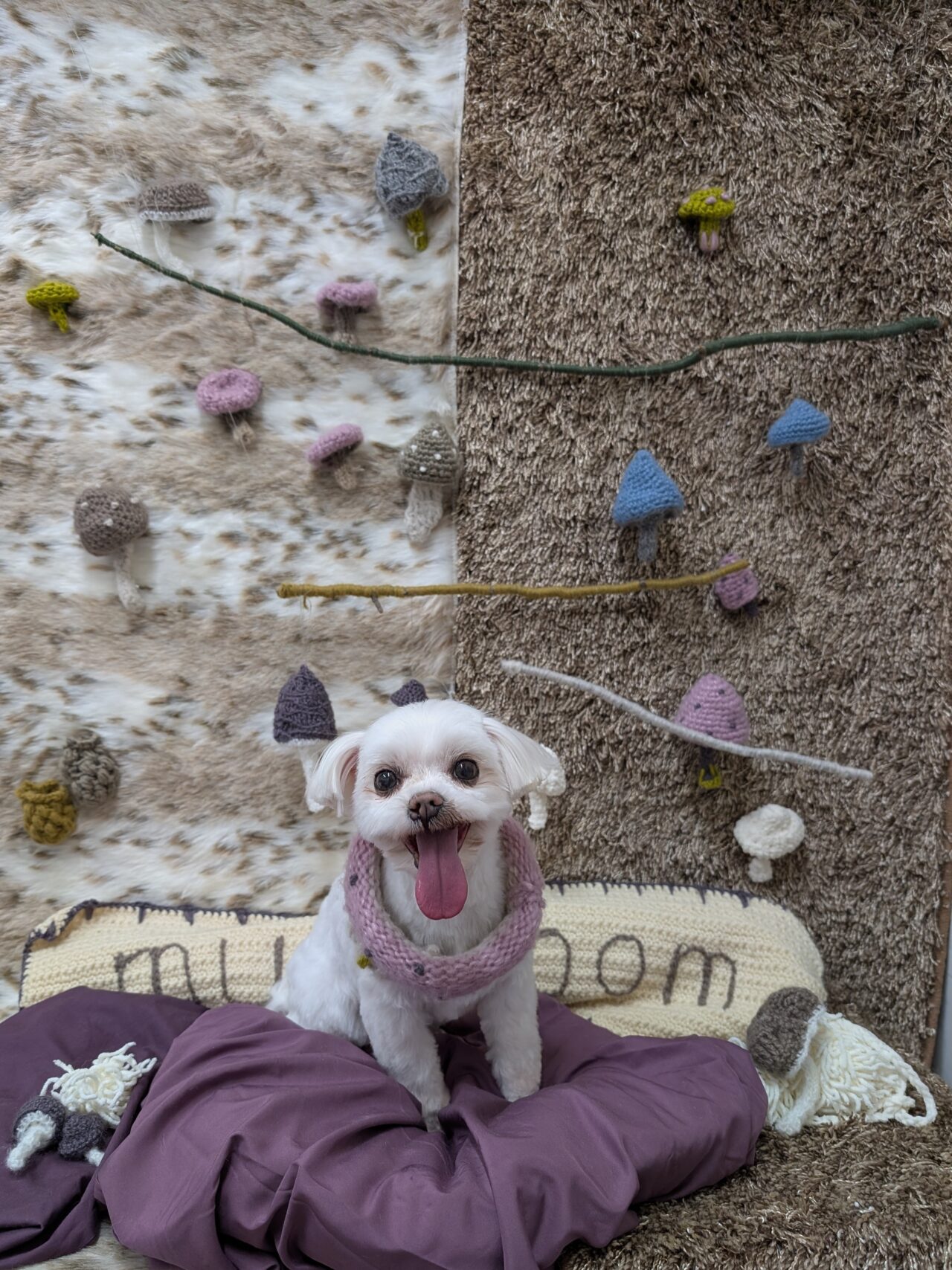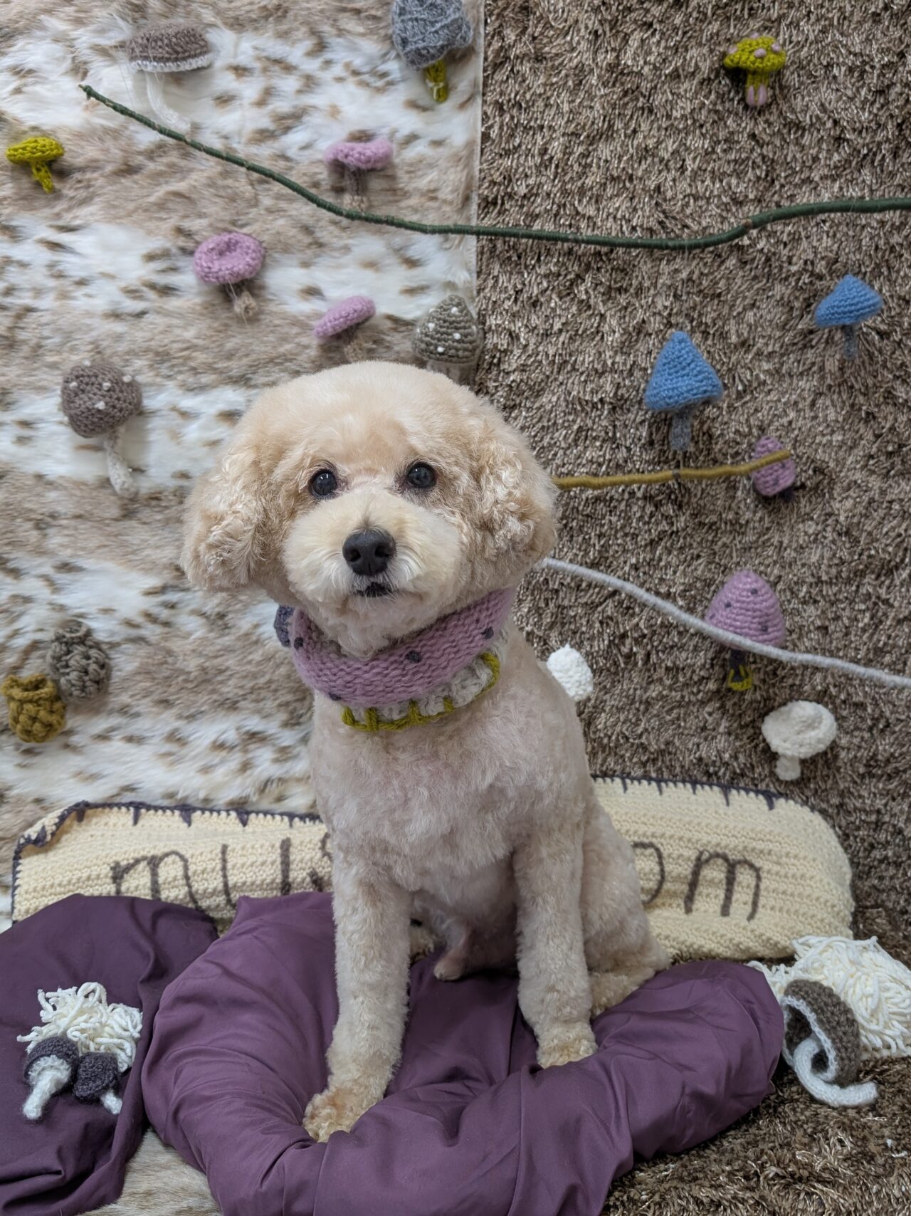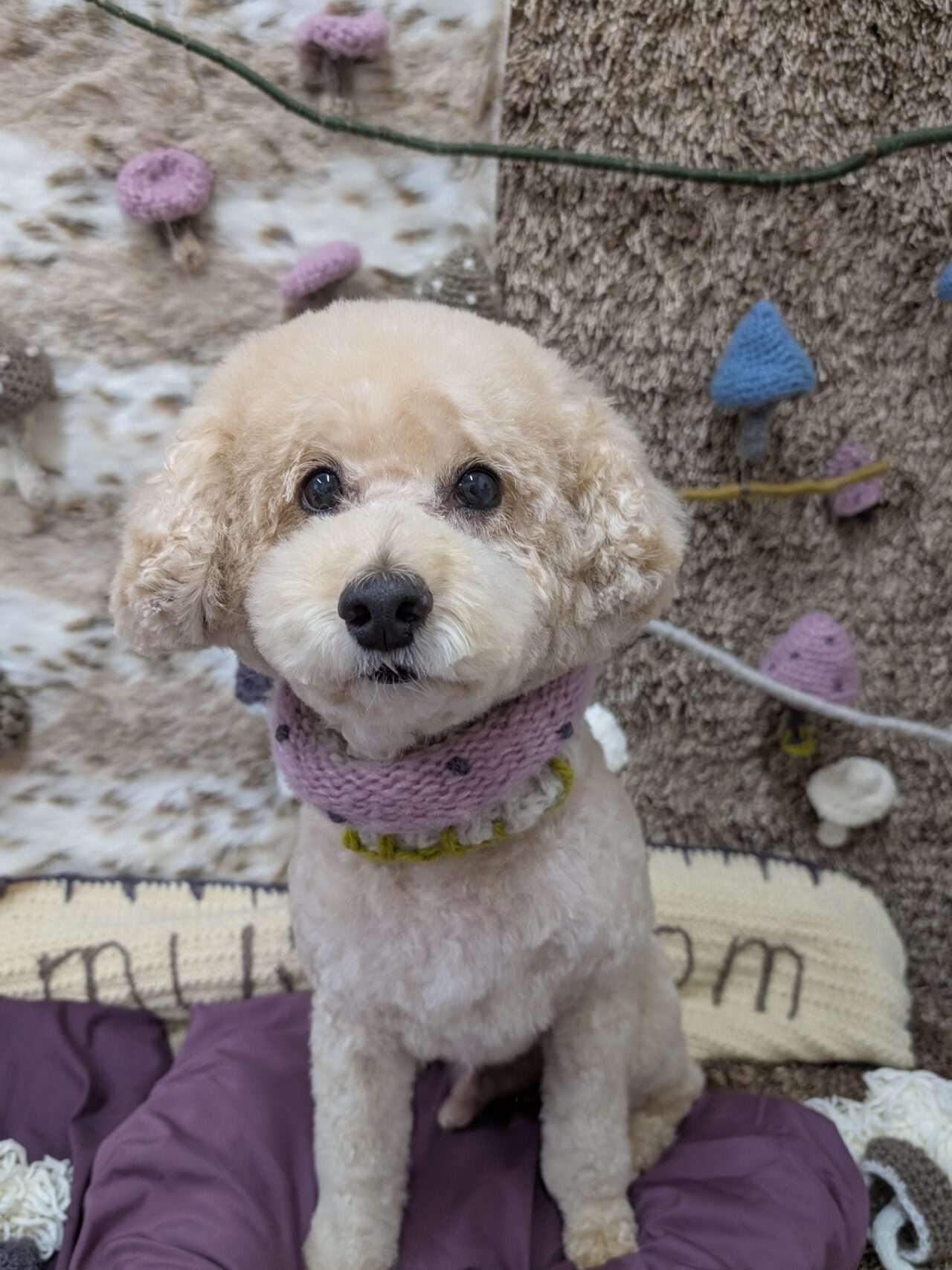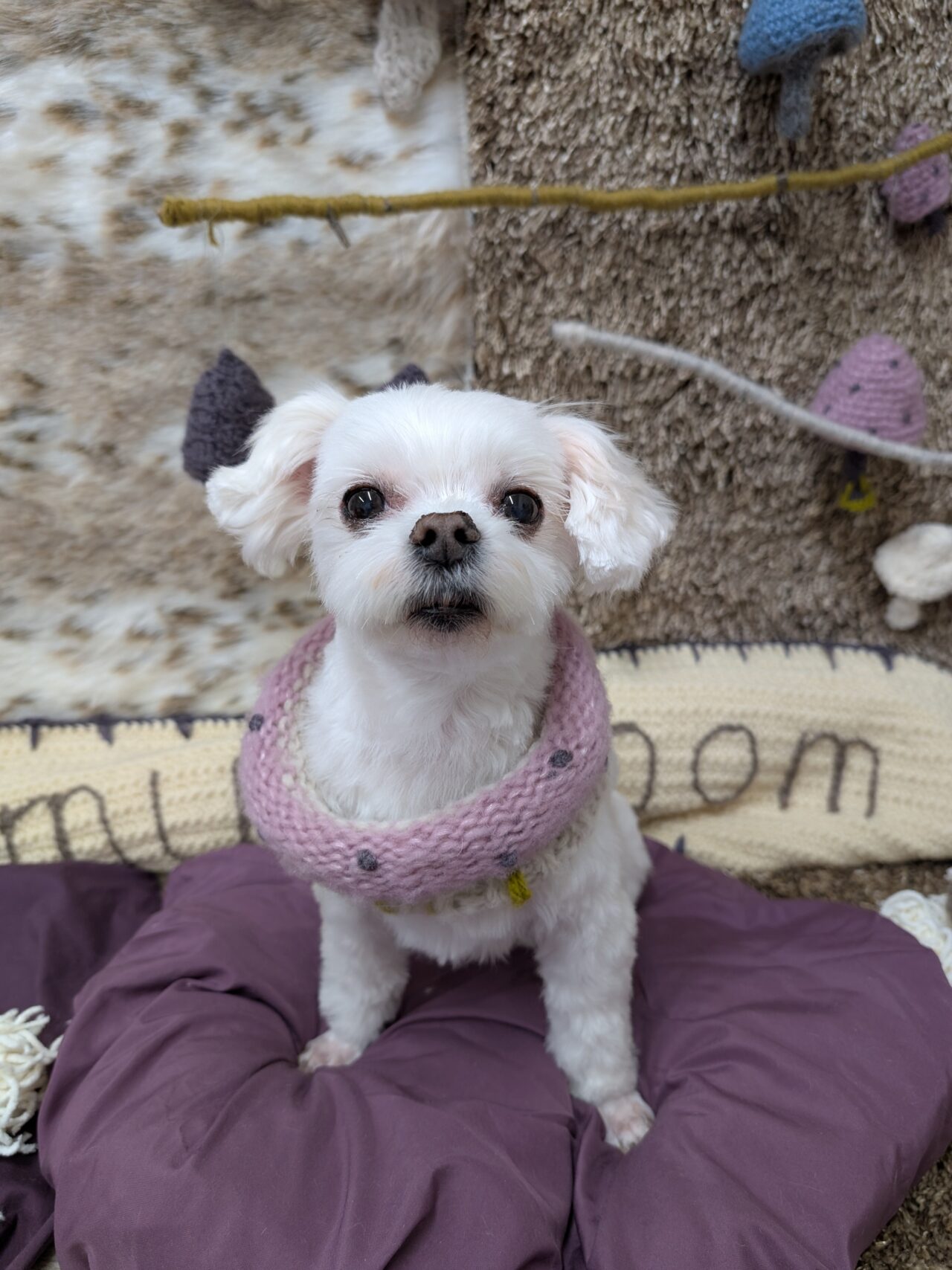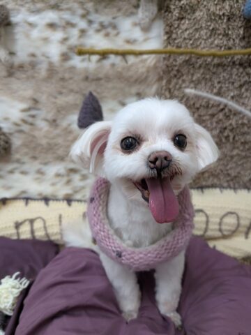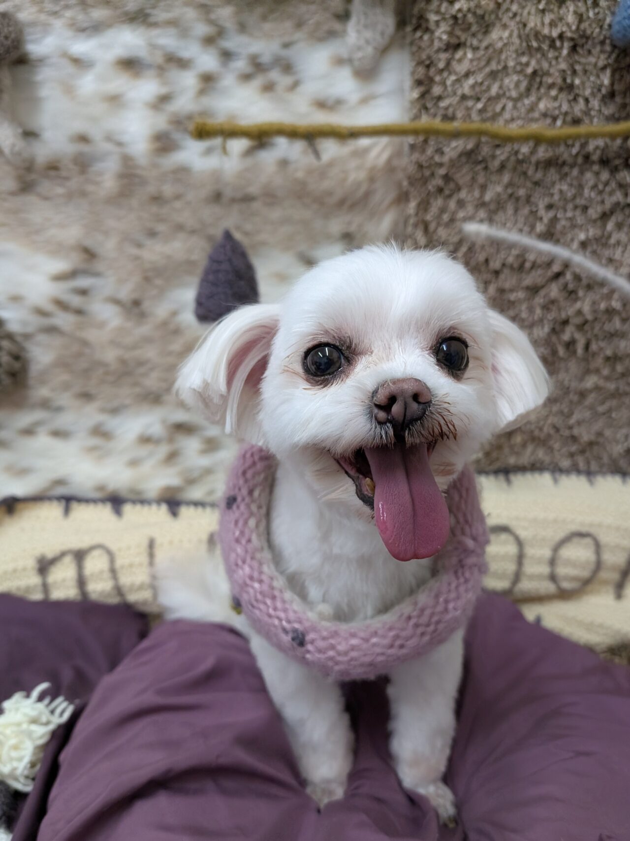 おもちちゃんと一緒に来て下さいました。マルチーズのこむぎちゃん。仲良しなこむぎちゃんおもちちゃんとっても可愛いです🥰