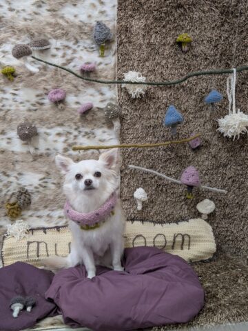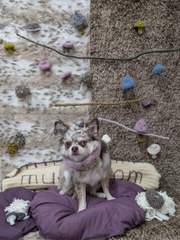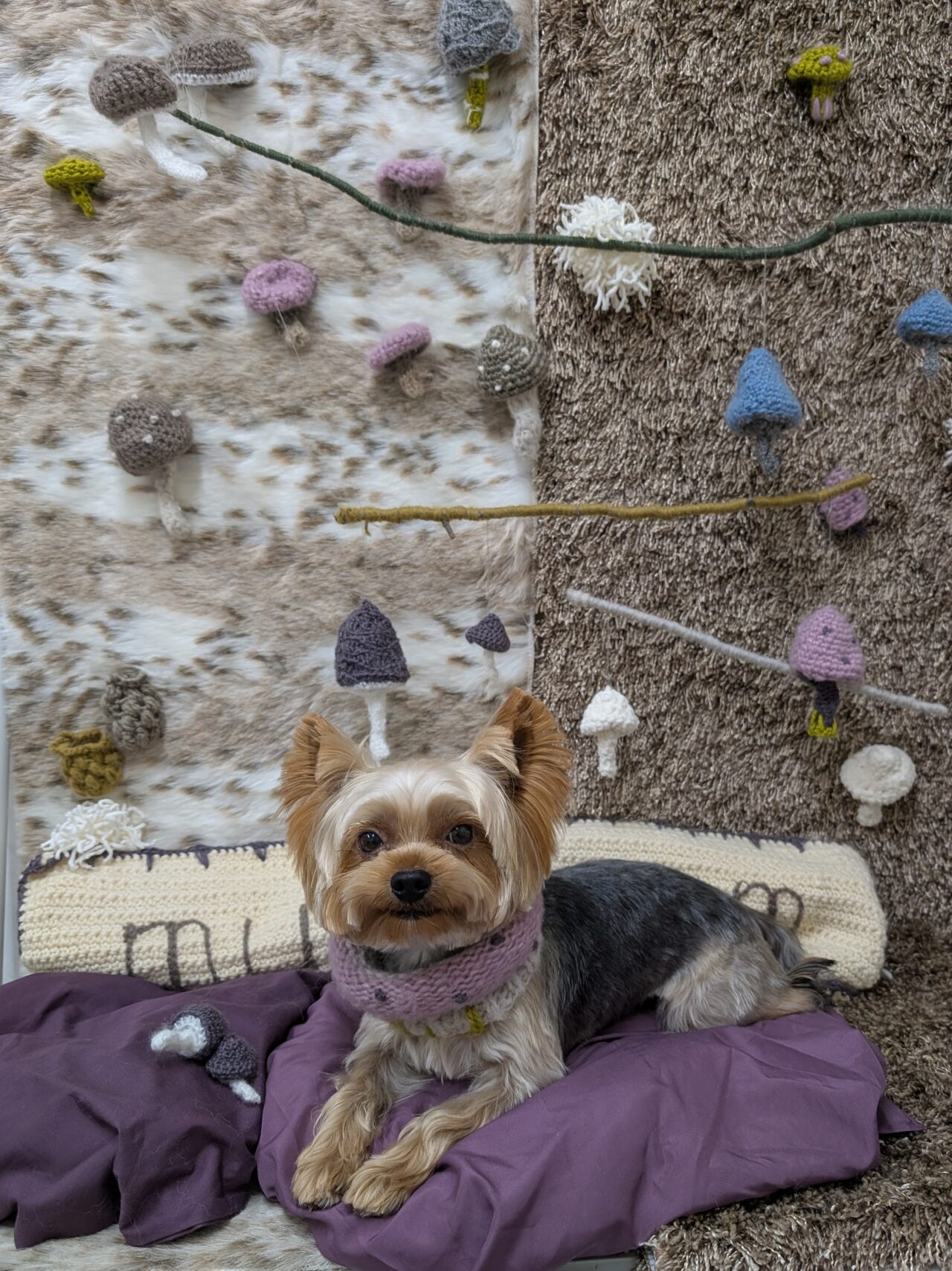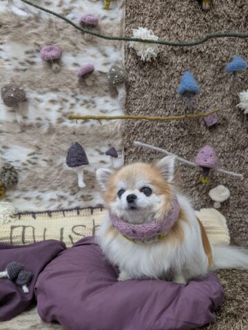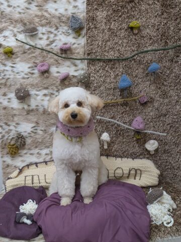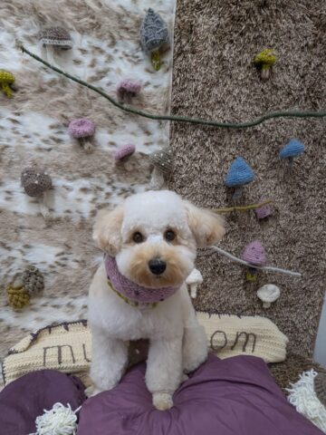 トリミングの背景と相まって、擬態化しているクウくん。綺麗な被毛、とってもおしゃれさんです🥰