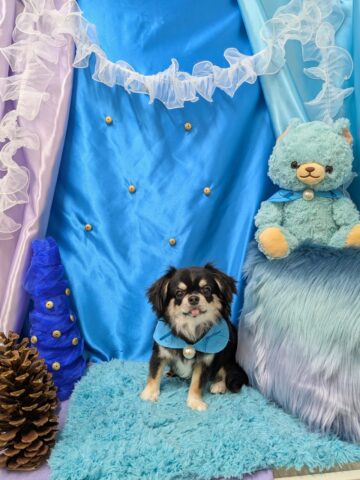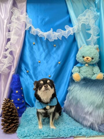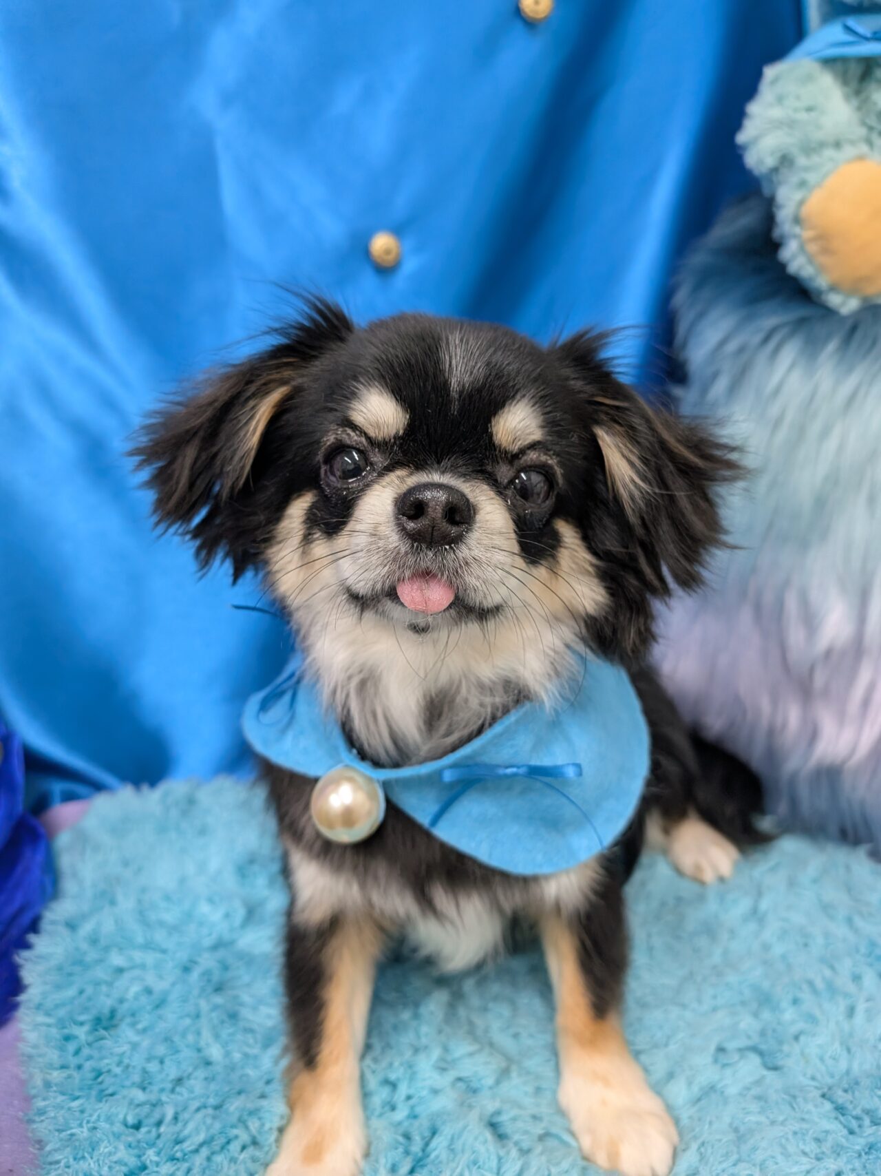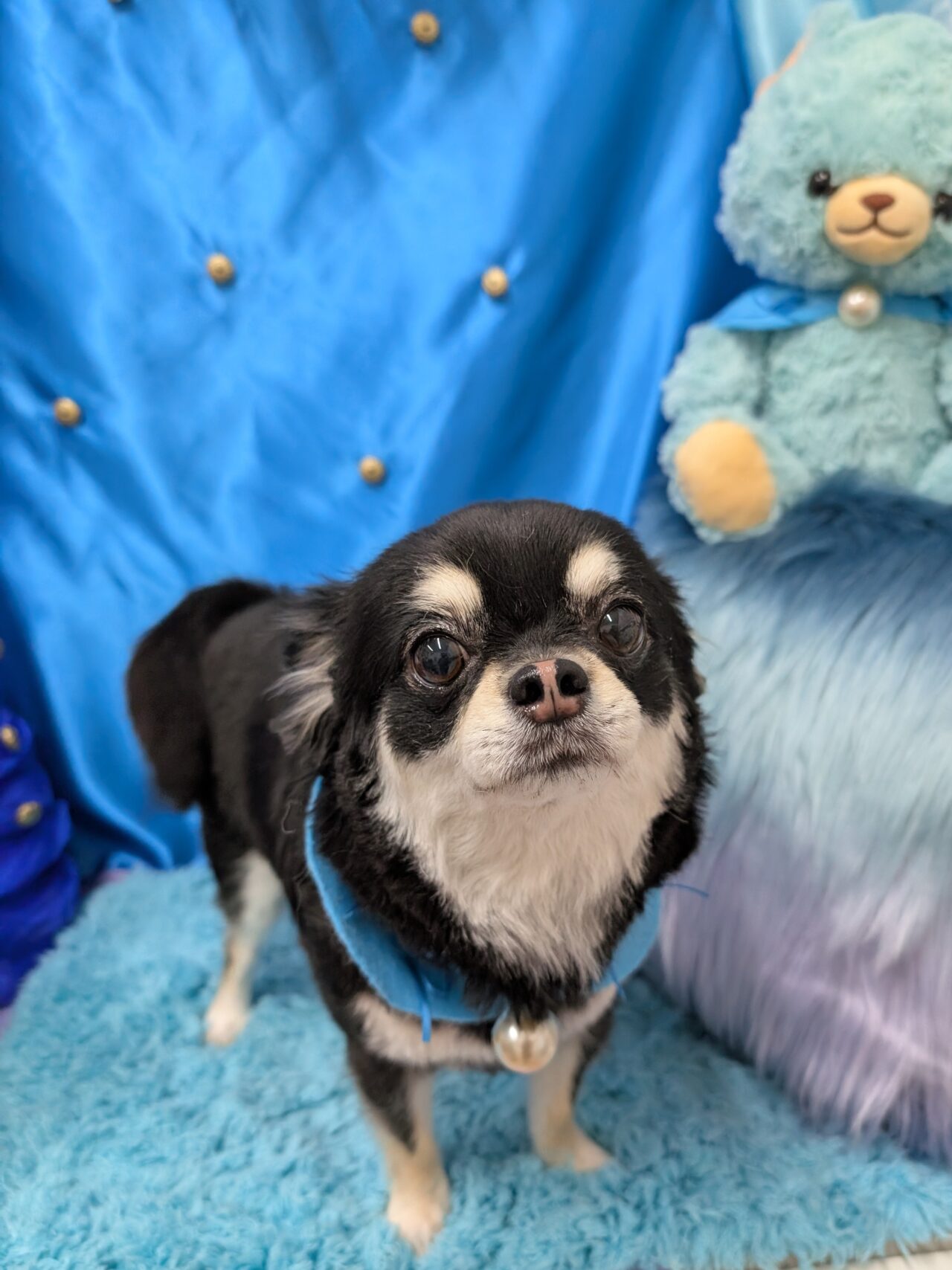 シャンプー&ポイントカットコースのご利用です。ロングコートチワワのルーくん。