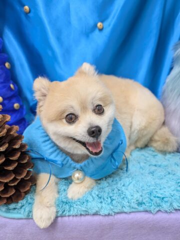 カットコースのご利用です。ポメラニアンのたらこくん。