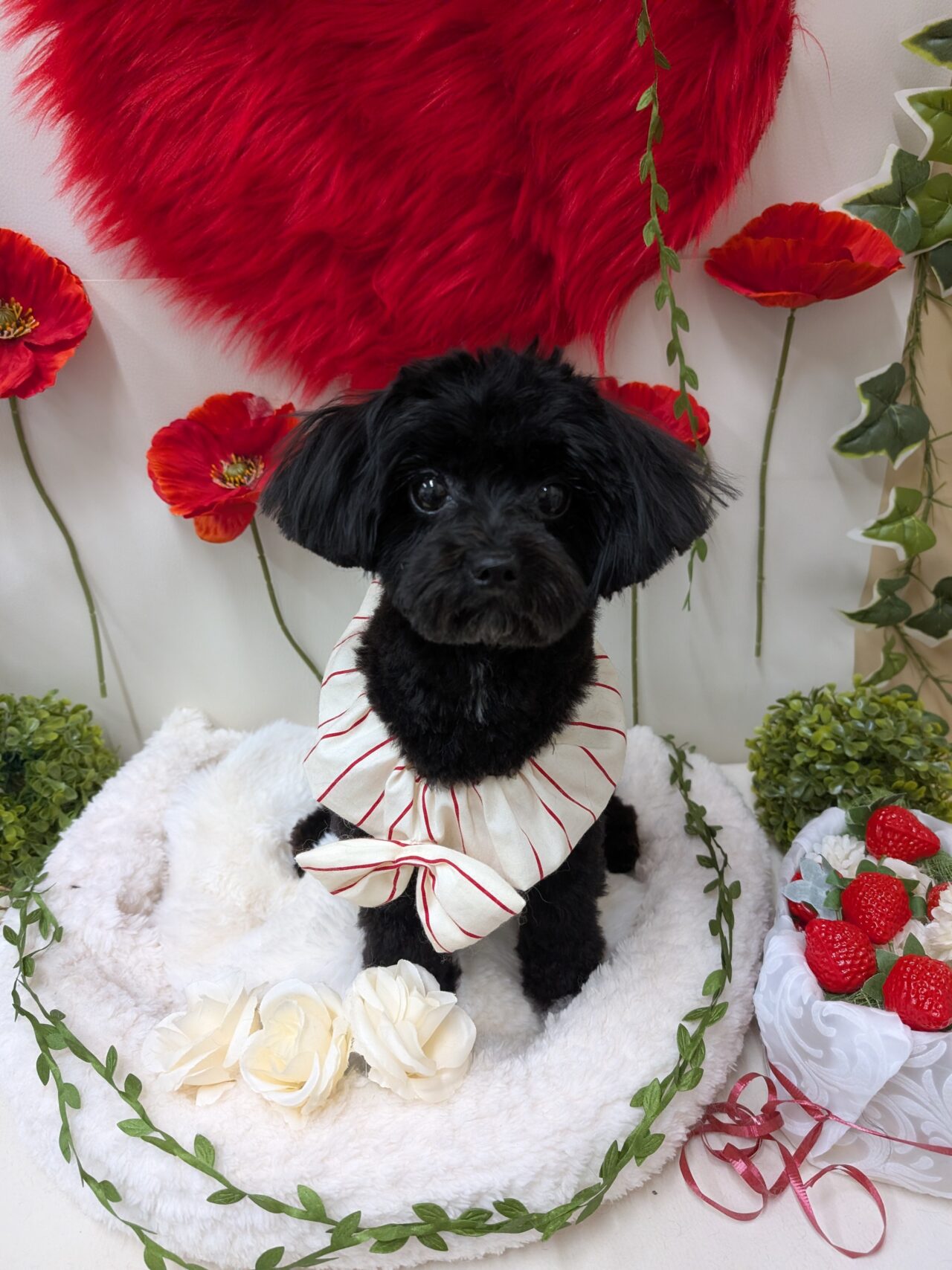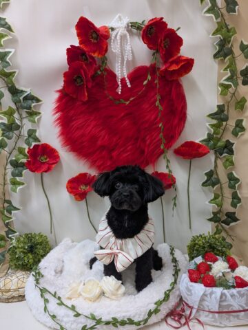 真っ黒ツヤツヤのちっちゃなむくちゃん。カットして可愛いおめめがよく見えるようになりました💞