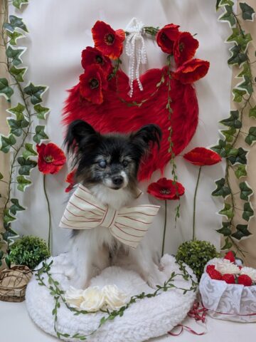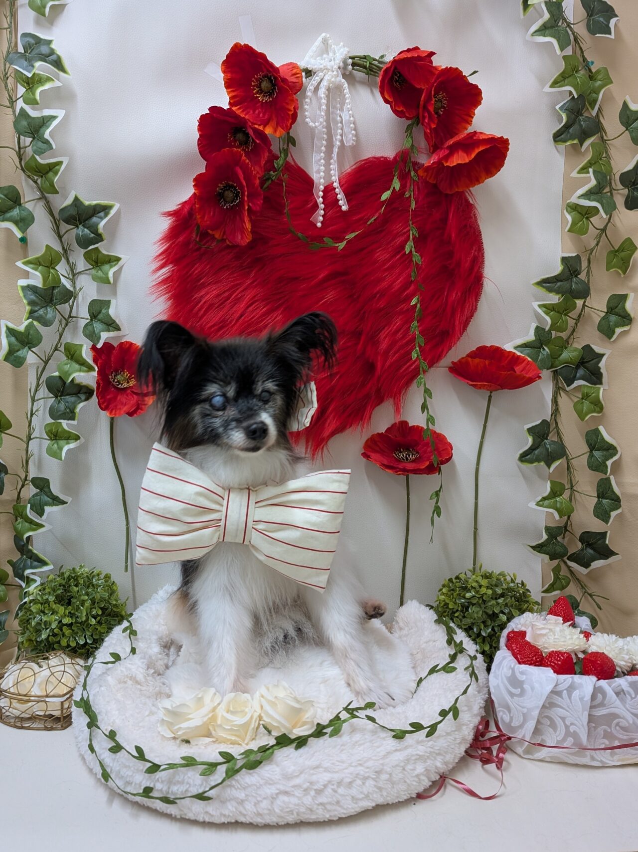 シャンプー&ポイントカットコースのご利用です。パピヨンのゴマくん。