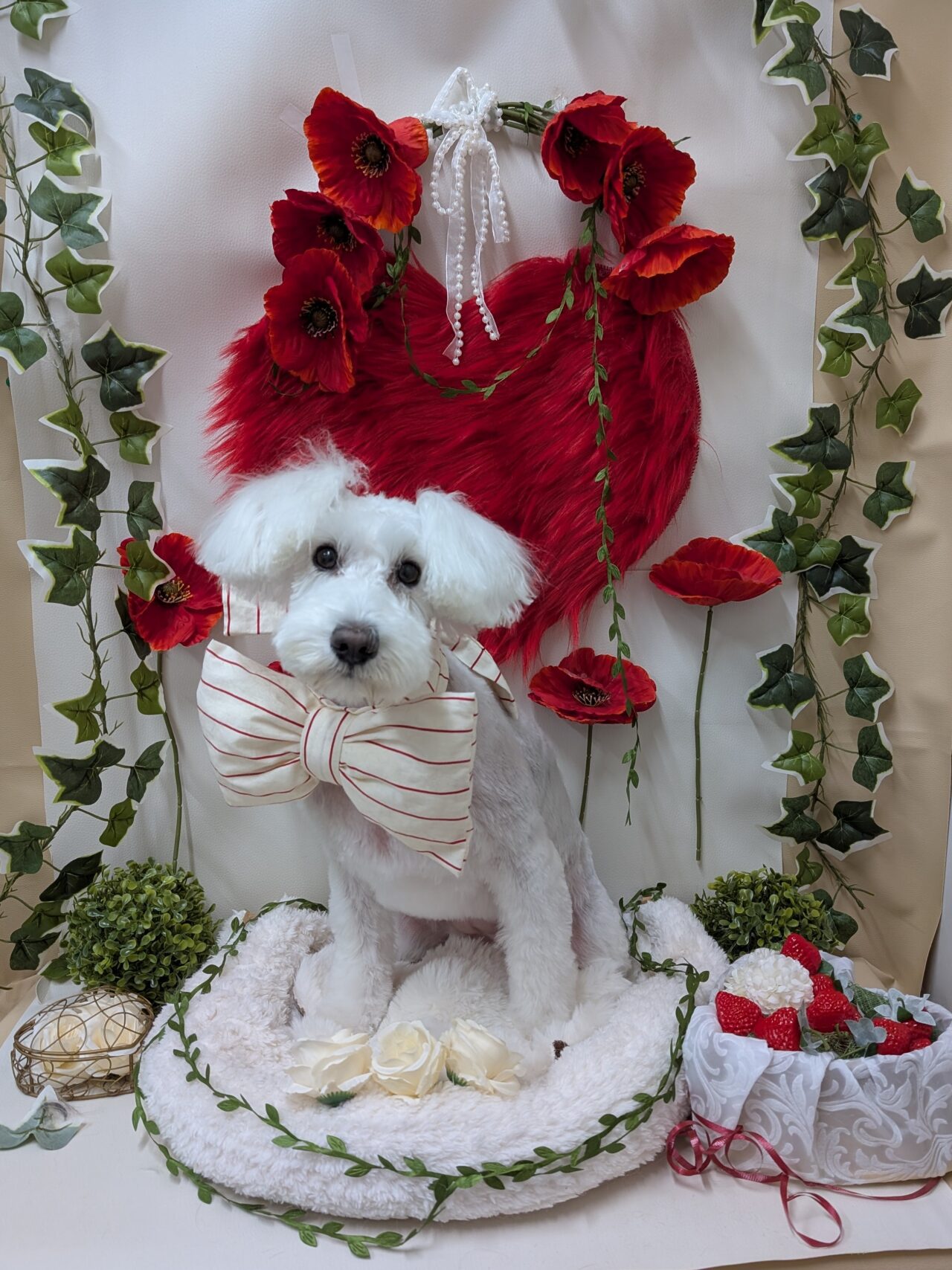 貴重なカラーの真っ白ノアちゃん。毛玉も取れてすっきりしました✨