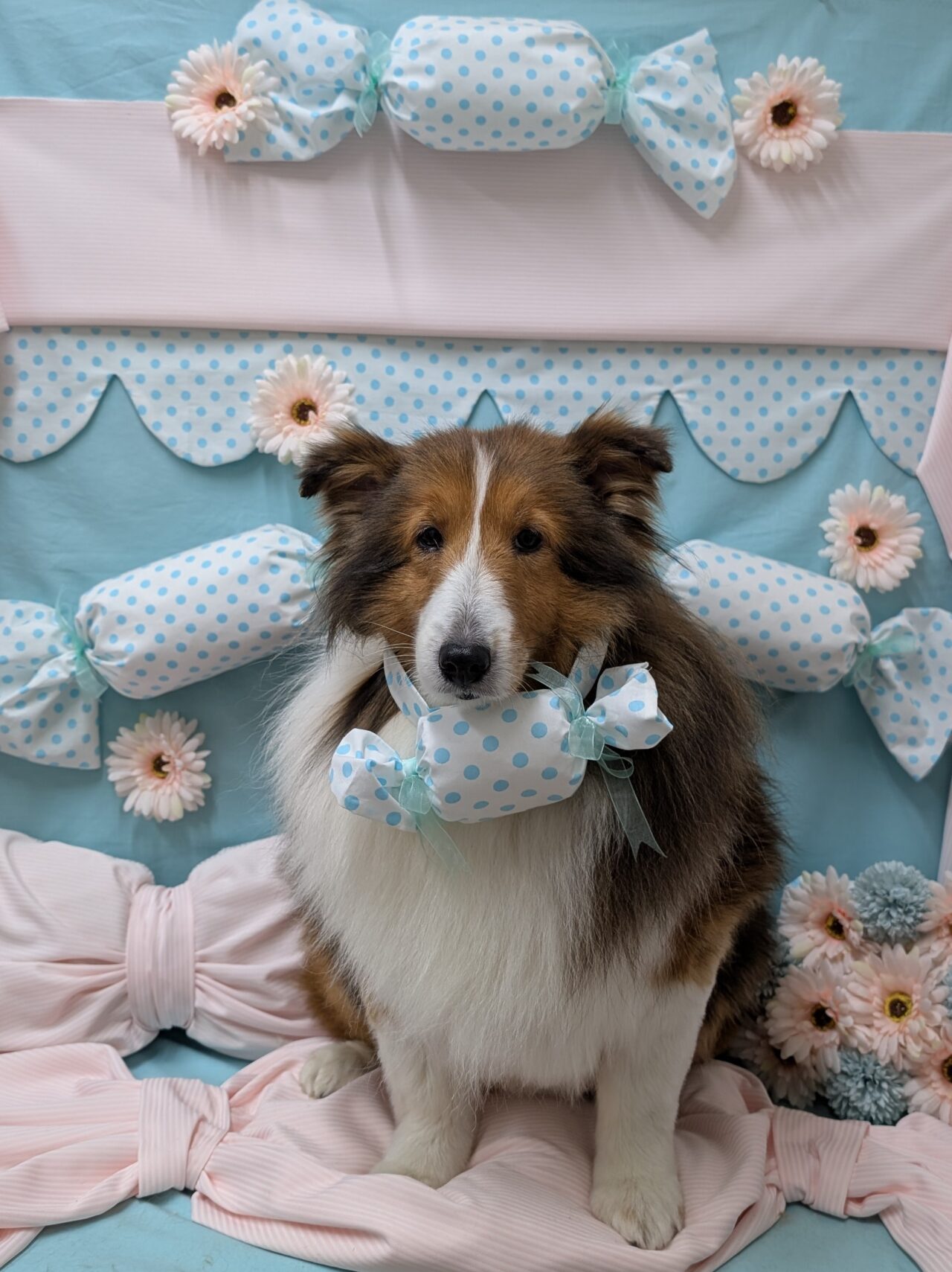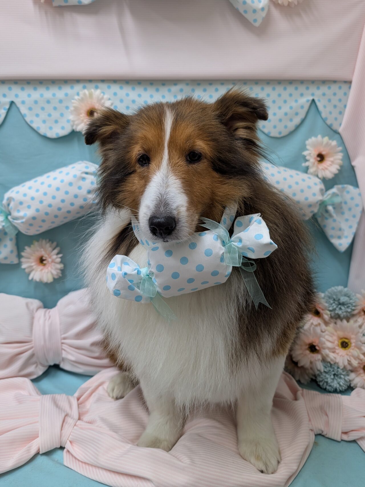 お薬シャンプー&ポイントカットコースのご利用です。シェルティーのまなちゃん。