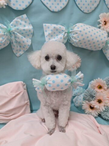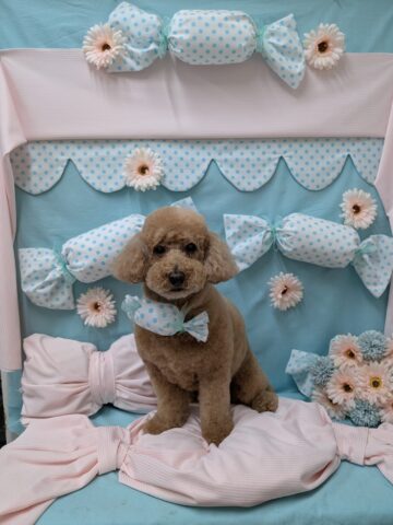 お薬シャンプー&カットコースのご利用です。トイプードルのおもちくん。
