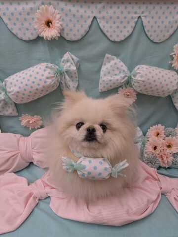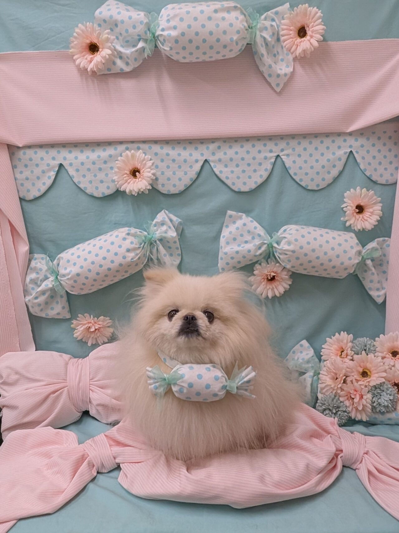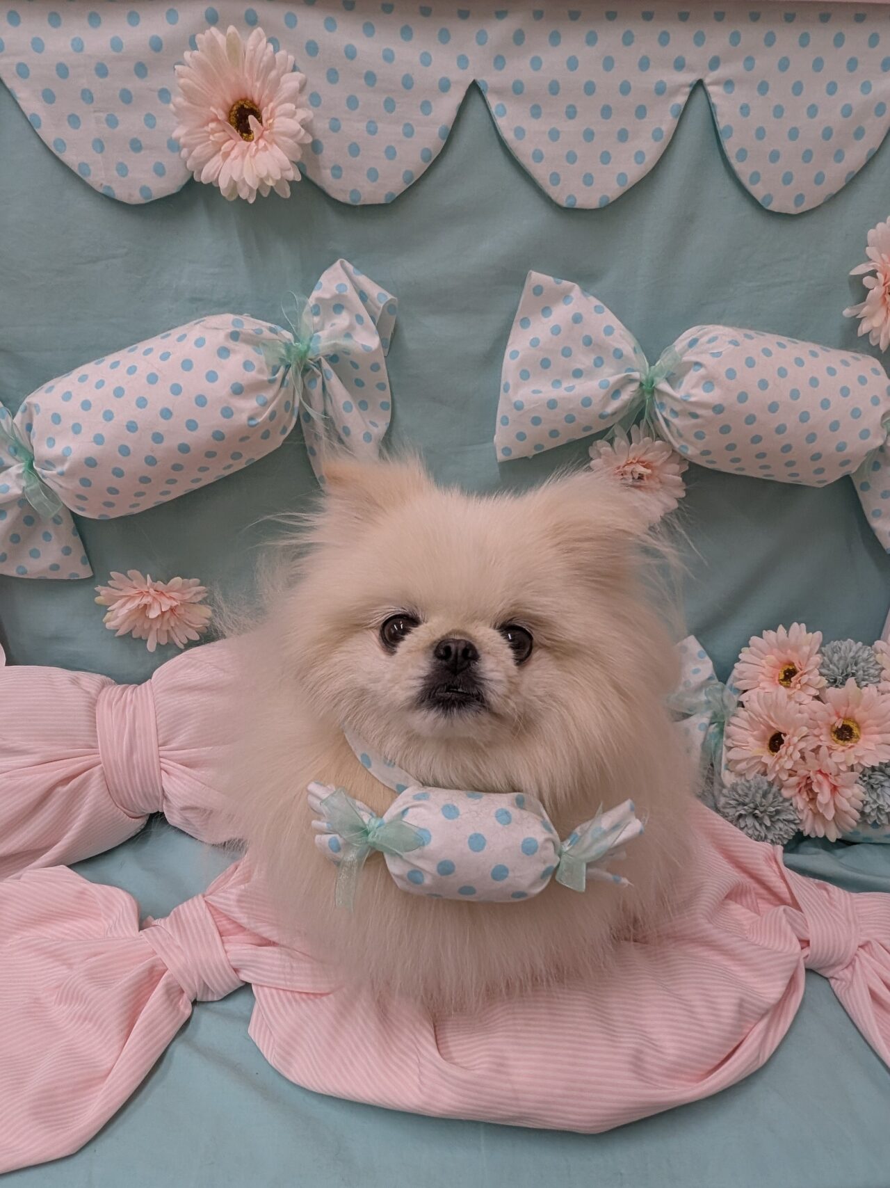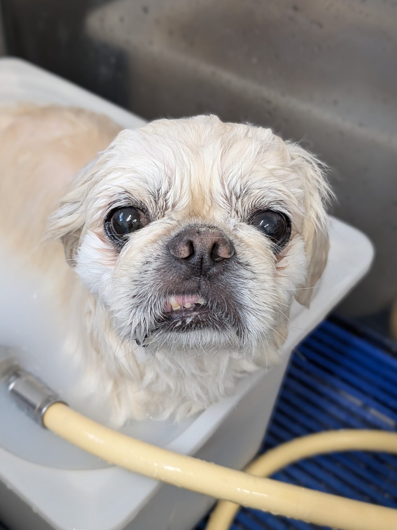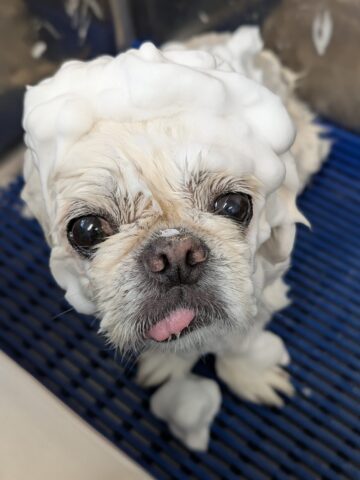 シャンプーコースのご利用です。ポメラニアン×ペキニーズのくうくん。