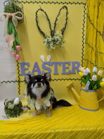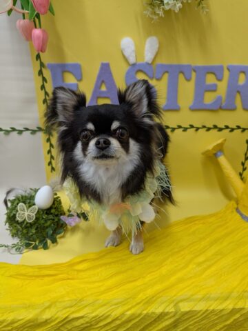 シャンプーコースのご利用です。ロングコートチワワのココくん。