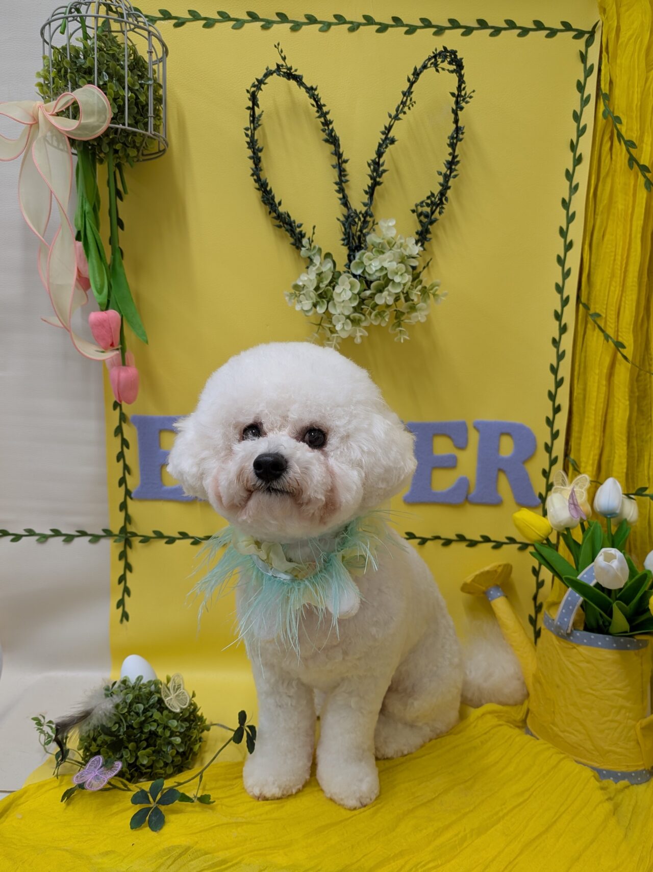 カットコースのご利用です。ビションフリーゼのカヲルくん。