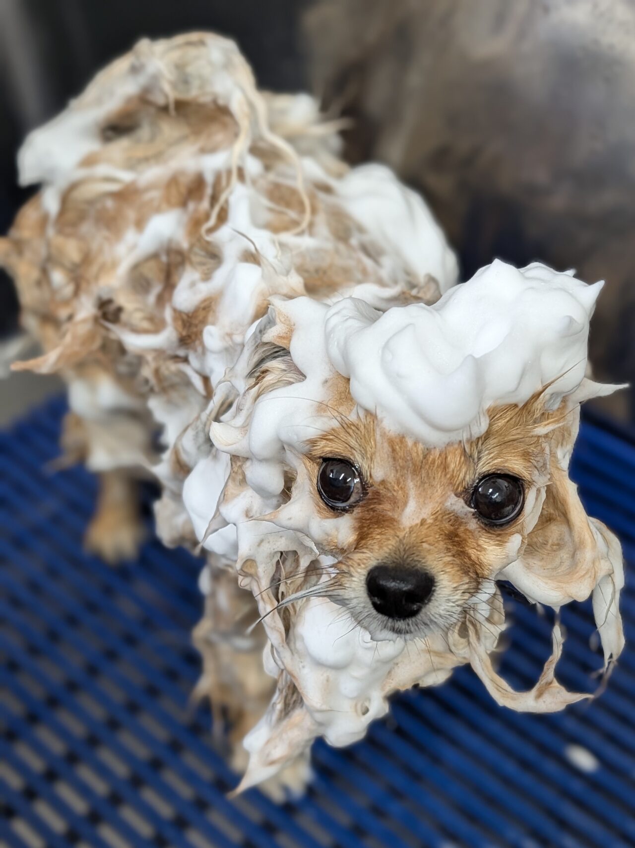 妹犬あずきちゃんと一緒に来て下さいました。ましゅまろ泡パック&ダーマモイストバスで毛穴の汚れも取れてすっきりしました✨