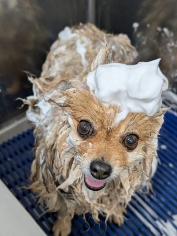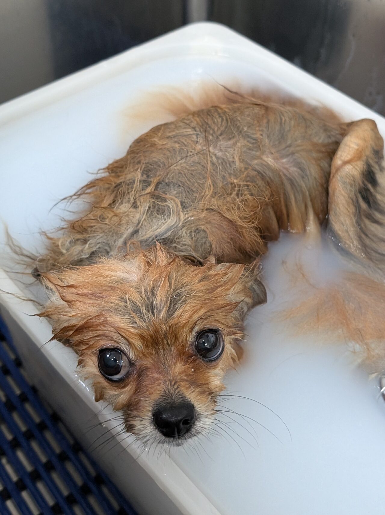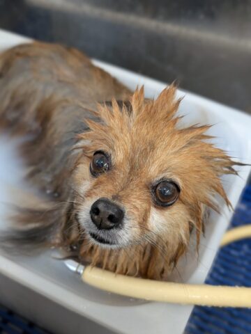 シャンプーコースのご利用です。ポメラニアンのあずきちゃん。