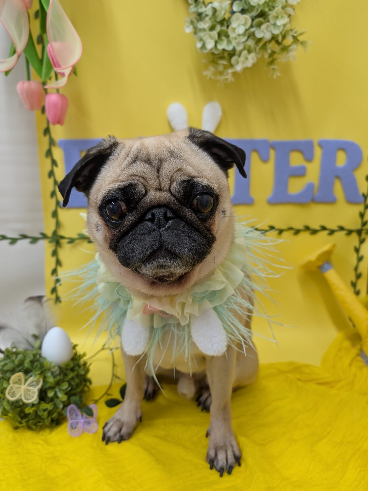 お薬シャンプーコースのご利用です。パグのももちゃん。
