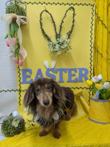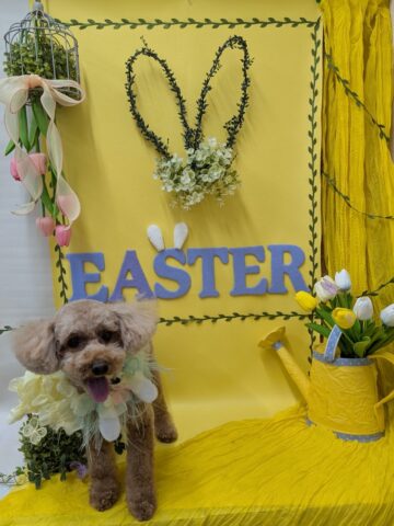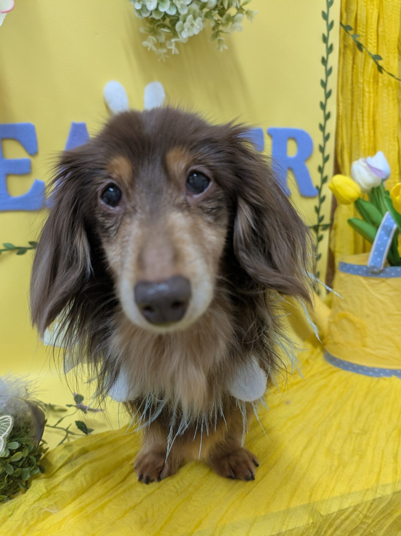 シャンプー&ポイントカットコースのご利用です。ミニチュアダックスのココちゃん。