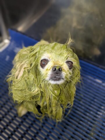 シャンプーコースのご利用です。ポメラニアン×チワワのくうくん。