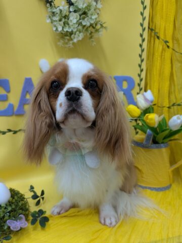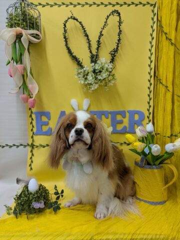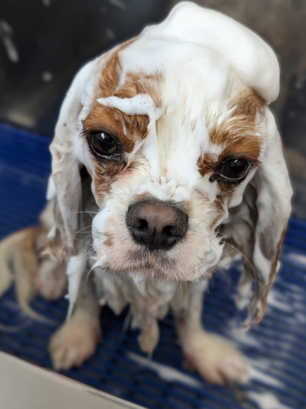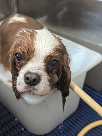 シャンプー&ポイントカットコースのご利用です。キャバリアのグリくん。