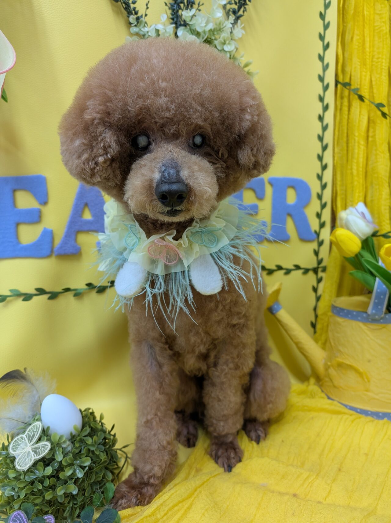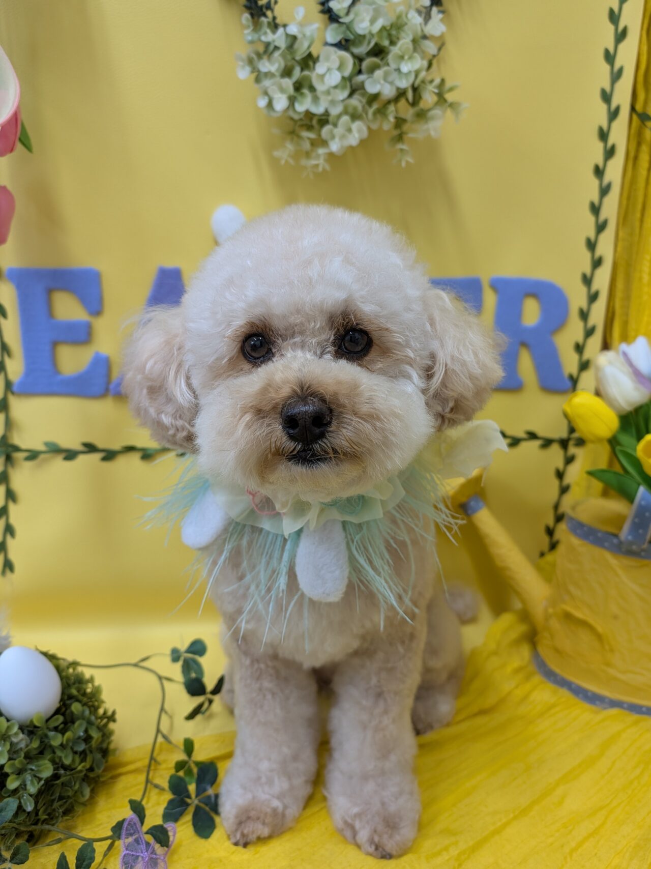 お薬シャンプー&カットコースのご利用です。トイプードルのきなこくん。