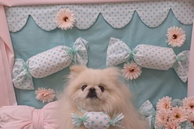 ☆くうくん☆シャンプーコースのご利用です。ポメラニアン×ペキニーズのくうくん。ハーブパックで緑に変身。静電気も抑えてくれる万能パック。健康な皮膚と美しい被毛とっても可愛いです🥰 ☆キリくん☆カットコース...